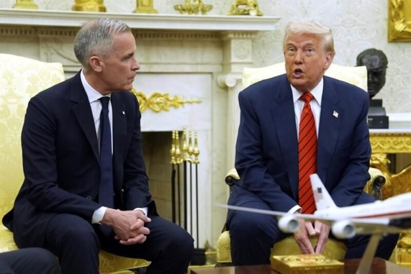 Una ocurrencia más. El presidente Donald Trump aseveró que el tratado de comercio entre Canadá, Estados Unidos y México (T-MEC) fue muy efectivo, pero se renegociará pronto para “ajustarlo o terminarlo”. Junto al nuevo primer ministro de Canadá, Mark Carney, el mandatario estadounidense fue interrogado por un periodista que le dijo: “el T-MEC está muerto”. “(El) T-MEC es genial para todos los países, es bueno para todos los países, tenemos una negociación en puerta para el próximo año o algo así, para ajustarlo o terminarlo”, dijo Trump sobre los cambios que su gobierno buscaría al T-MEC durante la revisión programada para julio de 2026. “Vamos a trabajar en algunos cambios sutiles a T-MEC. Todavía no qué cosas vamos a estar lidiando respecto al T-MEC. Ahora solo estamos hablando de conceptos”, añadió Trump, citado por Reforma. ERA INJUSTO PARA EU Trump calificó al extinto TLCAN como un acuerdo muy injusto para Estados Unidos, “un acuerdo muy, muy terrible. Nunca debió haberse firmado. Se firmó hace muchos años, pero nunca debió hacerse”. Inmediatamente después, el canadiense Carney aprovechó para asegurar que desde su punto de vista algunos cambios al T-MEC serán necesarios, pero remarcó a Trump que los aranceles establecidos contra México y Canadá han pasado por encima de puntos acordados durante la negociación trilateral. “Algunos aspectos tendrán que cambiar. Y parte de la manera en que se han aplicado estos aranceles se han tomado ventaja de aspectos existentes del T-MEC”, añadió el premier canadiense. “Por lo tanto, tendrá que cambiar. Se han incorporado otros elementos, y eso es parte de lo que vamos a discutir”, añadió Carney. (Fotos: Tomadas de Reforma y El Financiero) Compartir Navegación de entradas Tras arremeter contra España, ahora tramita nacionalidad Los cardenales pasan lista para el Cónclave 2025