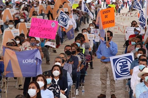 🔊 Escuchar esto En el arranque de su campaña en busca de la alcaldía de Irapuato, la abanderada del PAN, Lorena Alfaro se manifestó segura de representar dignamente a las mujeres de su municipio. Fueron cientos de militantes y simpatizantes los que asistieron a su primer evento en la Velaria del Infórum donde se contó con la presencia del presidente nacional del partido, Marko Cortés y se aplicaron todas las medidas sanitarias y protocolos de salud. “Queremos que los irapuatenses de todos los sectores (…) aporten el mayor valor a nuestro plan de gobierno, las políticas públicas, los programas y las acciones que habrán de incidir para bien en nuestras vidas los próximos años”, enfatizó la candidata de Acción Nacional al iniciar su camino rumbo a la jornada electoral del 6 de junio. MUJER CON PROPUESTAS Tanto Marko Cortés como Eduardo López Mares, presidente estatal del blanquiazul, se mostraron entusiastas con esta candidatura de liderazgo femenino, que conducirá a Irapuato por la senda de los valores, la paz y la justicia. El dirigente nacional resaltó el valor de tiene Lorena Alfaro para ser la candidata de Acción Nacional, pues dijo, ella sabe de trabajo, tenacidad y profesionalismo. “Les puedo decir que ella, dentro del Grupo Parlamentario, era una mujer que proponía, que disentía, que generaba consejos, que siempre era de las que participaba. Lo hacía en la comisión, lo hacía en la tribuna, cumplía con su responsabilidad y siempre pensó en Irapuato, en su gente “, dijo. LOS PILARES DE SU GOBIERNO Alfaro también destacó que su programa de gobierno estará integrado por cinco pilares que habrán de sostener a Irapuato y mejorar la vida de las familias: Valor Humano, Valor Ambiental, Valor para la Paz, Valor de Ciudad y Valor de futuro. Reconoció a las mujeres irapuatenses por su tenacidad para salir adelante y aseguró sentirse lista y con el valor necesario para representarlas dignamente. Compartir Navegación de entradas Trabajo en equipo con habitantes, compromiso de Luis Alberto Villarreal Impulso a los comercios leoneses afectados por la pandemia