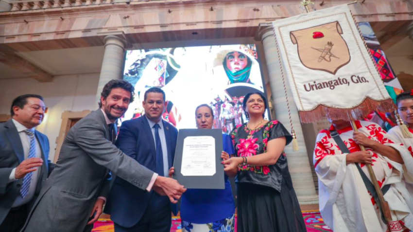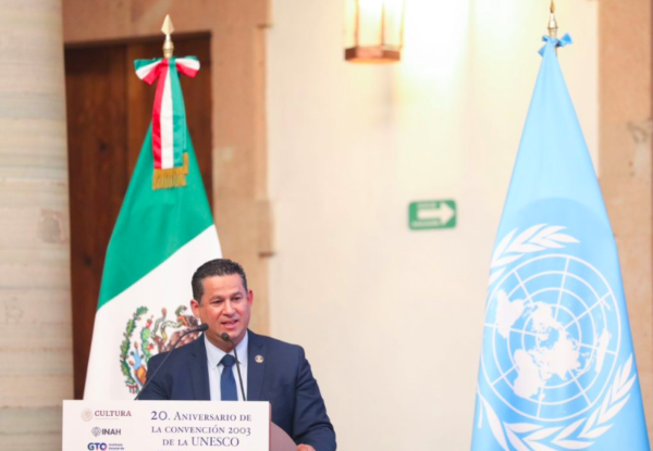El mandatario estatal habló así ante representantes de la Organización de las Naciones Unidas para la Educación, la Ciencia y la Cultura (Unesco), quienes entregaron la constancia de registro en el inventario del Patrimonio Cultural Inmaterial a la “Elaboración de tapetes y alfombras de arte efímero de Uriangato, Guanajuato”.