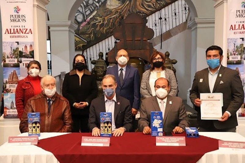 🔊 Escuchar esto Los 6 Pueblos Mágicos de Guanajuato y la Casa Corralejo firmaron una alianza estratégica a fin de promocionar los destinos turísticos de la entidad a través de la comercialización de un mini kit de la distinguida tequilera. “Esta colaboración pública-privada y formalización de este convenio nos da pauta a seguir fortaleciendo los destinos y a los actores productivos de la entidad (…). Estas acciones contribuyen a la reactivación del sector turístico ante las afectaciones por la pandemia del Covid-19”, dijo el titular de la Secretaría de Turismo de Guanajuato, Juan José Álvarez Brunel. En representación de los seis Pueblos Mágicos, Diego García Moncada, presidente del Comité del Pueblo Mágico de Dolores Hidalgo CIN, resaltó que Guanajuato es el primer estado que tiene este tipo de alianzas comerciales y de difusión. Destacó el trabajo de unión que hay entre los seis Pueblos Mágicos con el fin de impulsar el turismo. ALIANZA CON GRAN POTENCIAL Los alcances que tiene esta alianza en Mineral de Pozos, Yuriria, Comonfort, Dolores Hidalgo, Jalpa de Cánovas y Salvatierra, son: Difundir los atractivos turísticos con este mini kit que sirve de suvenir para los visitantes y turistas Otorgar un porcentaje de las ventas a los comités de los Pueblos Mágicos de Guanajuato. Posterior a la firma, los asistentes disfrutaron de la coreografía de danza azteca expuesta por bailarines de Mineral de Pozos; así como de una pasarela de vestidos pintados a mano representativos de Dolores Hidalgo con los vinos, talavera dolorense, el cantautor José Alfredo Jiménez, y la Parroquia de Nuestra Señora de los Dolores. Compartir
