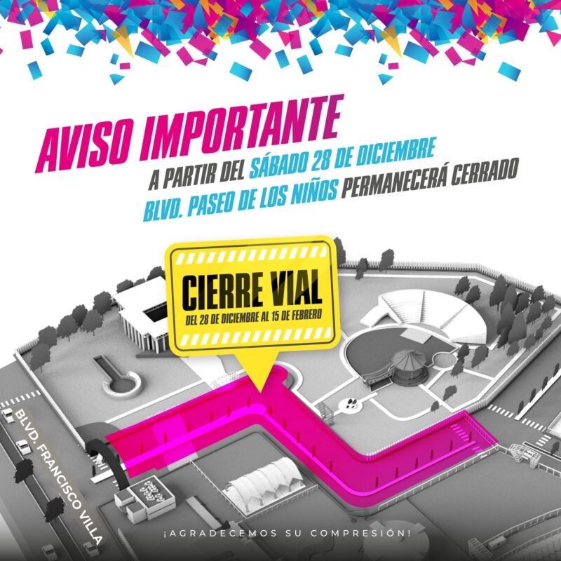 Como parte de los preparativos para la Feria León 2025, la Dirección de Vialidad anunció cierres a la circulación en los alrededores del recinto. Será partir de este sábado 28 de diciembre y hasta el 15 de febrero de 2025 cuando cierre la circulación vehicular del bulevar Paseo de los Niños del tramo que va del bulevar Francisco Villa hacia su cruce con Vasco de Quiroga y hacia la Tota Carbajal en una primera etapa. Adicionalmente se tendrá el cierre del boulevard Vasco de Quiroga de Calle Olimpo hacia Tota Carbajal, permaneciendo únicamente la circulación peatonal en el acceso al Teatro Bicentenario. TOMA TU TIEMPO El cierre de esta vialidad corresponde a que iniciarán los trabajos de montaje para la Feria, misma que se llevará a cabo del 10 de enero al 5 de febrero del 2025. Se pide a los usuarios que transitan por esta zona, tomar precauciones y utilizar vías alternas, informó el municipio. En esta edición de la Feria, en el acceso por Vasco de Quiroga, los visitantes encontrarán los tradicionales “gritones”, la ruta para la diversión en zona de juegos, así como nuevo contenido en el parque Ecológico de la Feria. Más información oficial en las redes sociales oficiales de la Feria de León, @feriadeleon y la página web: feriadeleon.mx. Compartir Navegación de entradas Sube flujo de pasajeros internacionales al Aeropuerto de Guanajuato Llama Salud de Guanajuato a evitar pirotecnia