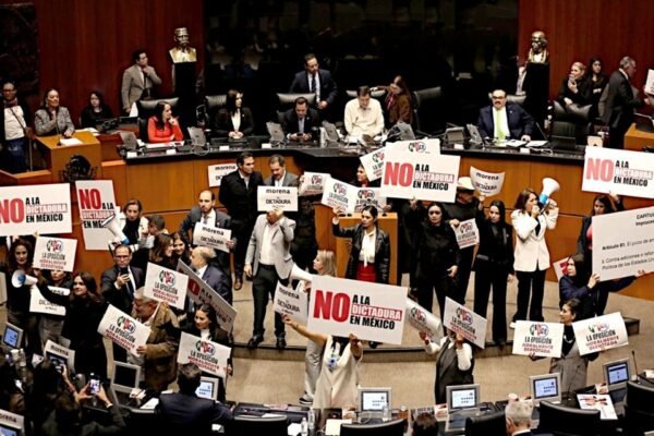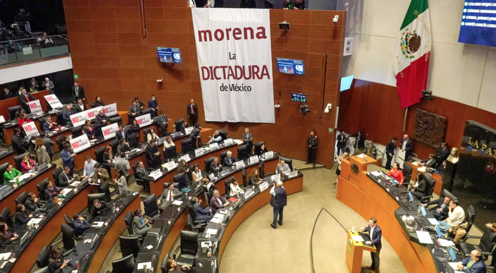 La aplanadora de Morena y aliados en el Senado aprobó una ley por la cual todas las reformas que apruebe el Poder Legislativo no sean impugnadas por ciudadanos ante la Suprema Corte de Justicia de la Nación (SCJN). Con esto, todas las iniciativas aprobadas por Morena y sus aliados Verde Ecologista y Partido del Trabajo que reformen la Constitución Política no podrán ser modificadas ni detenidas por el máximo tribunal de justicia de la nación. De ser aprobada por la Cámara de Diputados, entonces ya no procederán amparos, controversias ni cualquier otro recurso jurídico en contra de reformas constitucionales. Poco antes de la media noche, las bancadas opositoras tomaron la tribuna con pancartas que decían “No a la dictadura en México”, mientras que los legisladores de Morena se acercaron y levantaron otras con la frase “La oposición moralmente derrotada”. En una sesión caldeada, con escándalo permanente y protestas de la oposición, el Senado aprobó en la madrugada, con 85 votos a favor y 41 en contra, la reforma que decreta la imposibilidad de impugnar reformas constitucionales. CAOS Y SIRENAS Todo ocurrió en medio del caos, sonidos de sirena salidos de megáfonos llevados por la oposición, gritería y desorden, que aprovechó el presidente del Senado, Gerardo Fernández Noroña, para acelerar la votación, consignó Reforma. Los senadores morenistas llegaron apresurados a votar y lograr la mayoría calificada aprovechando ausencias de la oposición. Fuentes parlamentarias explicaron a Reforma que la premura obedecía a que el partido oficial sabía que la Suprema Corte resolverá, en los primeros días de noviembre, si la invalida o no. MINI REBELIÓN VERDE La bancada de Morena había sorteado, en las últimas horas, una mini rebelión de al menos cuatro senadores del partido Verde, inconformes con el contenido de la reforma a los artículos 105 y 107 de la Constitución, que hubiera podido dar al traste con la mayoría calificada que necesitaban. Trascendió que el líder de la bancada de Morena, Adán Augusto López Hernández, hubo de intervenir para sofocar el descontento en la bancada del Verde Ecologista. En la apertura del debate, la senadora panista Lilly Téllez pronunció un duro mensaje con el que advirtió que la presidenta Claudia Sheinbaum se convertiría en dictadora, déspota y opresora. “Peligra nuestra Patria: vean cómo Morena convierte a nuestro país en una dictadura. Vayan por el diccionario. Busquen la palabra dictadura y no se distraigan con nada”, dijo. “Esto es una dictadura. Morena suspenderá derechos y garantías constitucionales. Pongan atención, mexicanos: la primera presidenta de México será mañana, será la primera dictadora con ‘a’ de dictadora, con ‘a’ de autoritaria, con ‘a’ de déspota, con ‘a’ de tirana”, dijo entre otras frases. La iniciativa sería enviada a la Cámara de Diputados para su revisión. (Fotos: Tomadas de El Financiero y Reforma) Compartir Navegación de entradas Van 4 más a prisión por robo de comercios en León Espera informe de seguridad tras ataques en Guanajuato