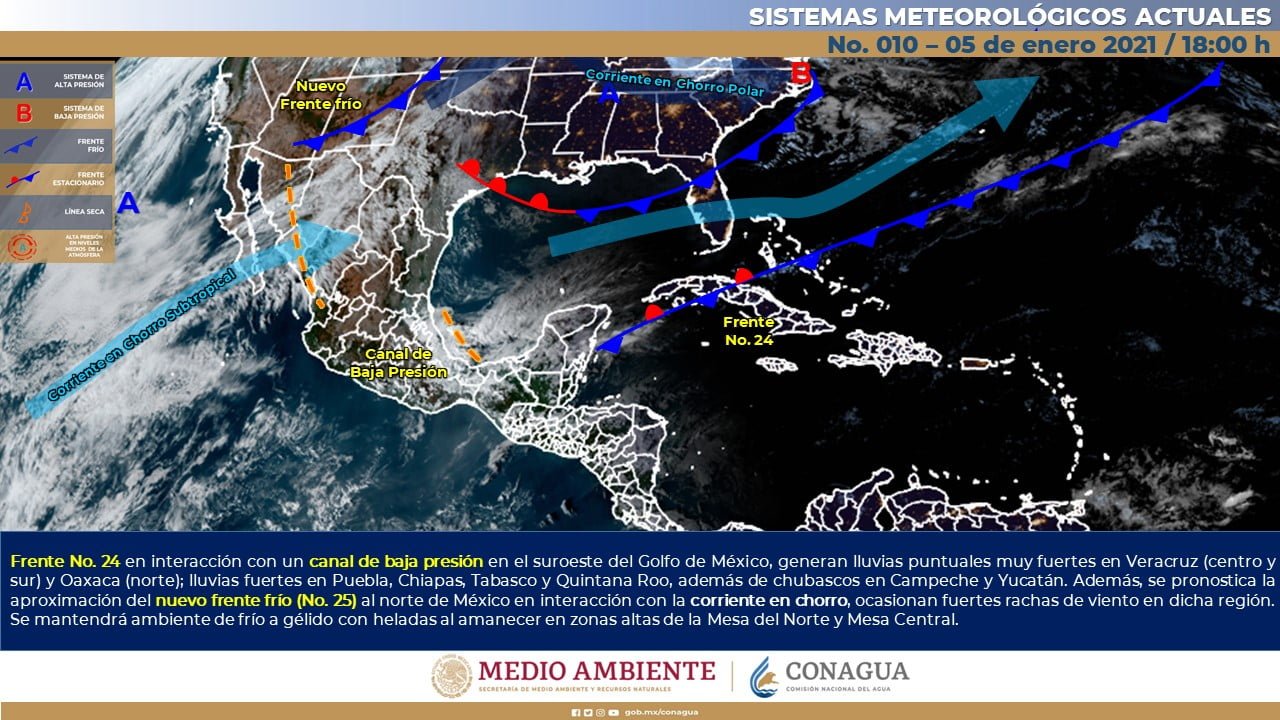 🔊 Escuchar esto Guanajuato tendrá este miércoles un ligero aumento de temperaturas durante el día, aunque las mínimas seguirán en 5 grados, dio a conocer el Servicio Meteorológico Nacional (SMN). De acuerdo con su último reporte, el organismo dependiente de la Comisión Nacional del Agua (Conagua) dijo que la Mesa Central del país tendrá cielos parcialmente nublados en la mañana y medio nublado con lluvias aisladas solo en los estados de Hidalgo, Querétaro y Puebla. Se mantiene por la mañana ambiente frío con heladas en toda la región de la Mesa Central con algunos bancos de niebla. POCO CALORCITO EN GUANAJUATO El reporte indica que la mayor parte de Guanajuato seguirá con cielos despejados y una ligera alza en las temperaturas máximas llegando a 24 y 25 grados. Estas condiciones meteorológicas tendrán los municipios de León, Celaya, Guanajuato capital, Dolores Hidalgo, Pénjamo, Comonfort, Salamanca e Irapuato, entre otros. No obstante, las mínimas promedio en todo el estado seguirán oscilando entre los 5 grados, aunque en las zonas serranas seguirán entre 2 y 3 grados en la madrugada y noche. LLEGA NUEVO FRÍO EN EL NORTE Para el resto del país, el SMN dijo que el nuevo frente frío (No. 25) y su masa de aire frío asociada, recorrerán el norte y noreste del territorio nacional. Estos fenómenos ocasionarán rachas fuertes de viento en los estados de Coahuila, Nuevo León y Tamaulipas, además de un nuevo descenso de las temperaturas sobre las mencionadas regiones. Por su parte, el frente No. 24 se extenderá sobre el Mar Caribe, sin afectar México. FRÍO EN EL CENTRO Y NORTE Asimismo, se mantendrá el ambiente frío a muy frío durante la mañana y noche sobre los estados de la Mesa del Norte y la Mesa Central, con heladas al amanecer en zonas montañosas, además de bancos de niebla matutina a lo largo de la Sierra Madre Oriental, centro y sureste del país. Los sistemas meteorológicos ocasionarán este miércoles: Intervalos de chubascos (5.1 a 25 mm) acompañados descargas eléctricas y rachas fuertes de viento en los estados de Veracruz, Guerrero, Oaxaca y Chiapas. Lluvias aisladas (0.1 a 5.0 mm) en Tamaulipas, San Luis Potosí, Querétaro, Hidalgo, Puebla, Tabasco, Campeche y Quintana Roo. Viento de componente norte con rachas de 50 a 60 km/h en Mar de Cortés y con tolvaneras: Coahuila, Nuevo León y Tamaulipas. Temperaturas máximas de 35 a 40°C en Michoacán y Guerrero. Temperaturas mínimas para la madrugada del jueves de -15 a -10°C con heladas en las zonas montañosas de Chihuahua y Durango. Temperaturas mínimas para la madrugada del jueves de -10 a -5°C con heladas en las zonas montañosas de Baja California, Sonora, Coahuila y Nuevo León. Temperaturas mínimas para la madrugada del jueves de -5 a 0°C con heladas en las zonas montañosas de San Luis Potosí (occidente), Zacatecas, Aguascalientes (norte), Guanajuato, Michoacán, Estado de México, Puebla y Tlaxcala. Temperaturas mínimas para la madrugada del jueves de 0 a 5°C y posibles heladas en zonas montañosas de Tamaulipas, Jalisco (noreste), Querétaro, Hidalgo, Ciudad de México, Veracruz y Oaxaca (noroeste). Compartir