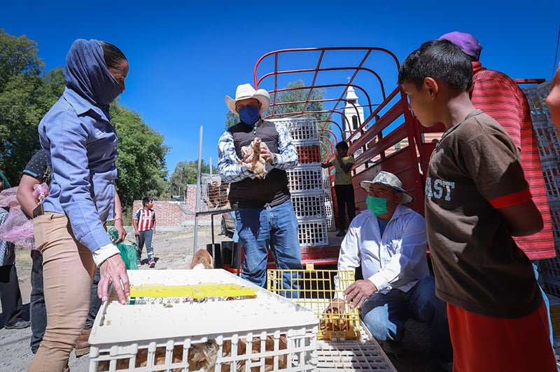 Con una inversión de 658 mil pesos municipales, se realizó la entrega de 400 paquetes de aves a familias de la zona rural.
