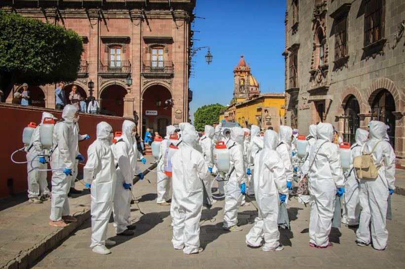 🔊 Escuchar esto Las acciones para contener la propagación del coronavirus Covid-19 están al máximo en el municipio de San Miguel de Allende, Guanajuato. Elementos de la Secretaría de Seguridad Pública, integrantes de la Dirección de Servicios Públicos y Calidad de Vida y miembros de diferentes áreas de la Administración Municipal formaron el primer Ejército de Sanitización que trabaja en los principales espacios públicos de la demarcación. [read more=”Leer más” less=”Leer menos”] 🔊 Nota completa De acuerdo con un comunicado, el gobierno municipal incrementó las acciones para evitar la propagación de este virus en San Miguel de Allende, las cuales incluyen la participación aproximada de 50 personas debidamente equipadas. Desde este miércoles, las brigadas estuvieron en los principales espacios comunes y puntos de reunión como calles, plazas, pasajes, atrios, parques, baños públicos, transporte, mercados, entre otros. Divididos en cuatro brigadas debidamente coordinadas, los operativos consistirán en la desinfección y sanitización de espacios donde concurren los ciudadanos para actividades esenciales, tanto en espacios exteriores e interiores. Este ejército municipal de sanitización inició actividades diarias y permanentes, mientras dure la contingencia. Asimismo, el gobierno municipal reiteró a la ciudadanía acatar las indicaciones sanitarias para evitar el contagio, como: Lavarse las manos constantemente con agua y jabón. Guardar la sana distancia (se recomienda de 1 a 1.20 metros) y Quedarse en casa, no salir si no es estrictamente indispensable. [/read] Compartir