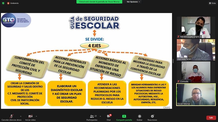 🔊 Escuchar esto Capacitación al máximo en Guanajuato para el eventual regreso a clases presenciales en el estado. En un comunicado, la Secretaría de Educación de Guanajuato (SEG) dijo que capacita a Comités de Seguridad de 397 planteles educativos de nivel básico en los municipios de Ocampo y San Felipe sobre el protocolo y lineamientos de prevención ante la contingencia sanitaria, con el objetivo de contar con las condiciones adecuadas para el regreso a las aulas de manera segura. Las capacitaciones se realizaron a distancia desde finales del año pasado con uso de plataformas virtuales y grupos de whatsapp en coordinación con el Consejo Municipal de Participación Social en Educación (Comupase) y personal del Centro de Atención Integral de Servicios Esenciales en Salud (Caises) de la Secretaría de Salud de Guanajuato (SSG). En sesión virtual con los organismos colegiados de Ocampo y San Felipe, los participantes concordaron en que los temas expuestos con la comunidad educativa fomentan una cultura efectiva del autocuidado y protección al poder identificar medios de transmisión y síntomas, el uso correcto del equipo de protección, cuidado de la salud física y mental. También se mencionaron las modificaciones en los hábitos que se deben desarrollar al ingresar a los centros de trabajo y lugares de uso común. IMPORTANCIA DE LOS FILTROS En la reunión se insistió en la importancia de conocer los filtros que existirán para un retorno escolar seguro y la participación activa de toda la comunidad educativa, padres de familia, de salud y gobierno. Se realizará el monitoreo pertinente a partir de la aplicación de cuatro filtros: Filtro en el hogar. En el que el responsable es el padre de familia y se asegurará de que ni el alumno o algún miembro de la familia presente síntomas de coronavirus. Filtro en las escuelas. A la entrada de cada institución se colocará un filtro de sanidad, llevado a cabo por una Comisión de Salud y Seguridad. Filtro en el aula. Además del filtro a la entrada de la escuela, habrá un filtro dentro de las aulas donde el responsable será el docente. Filtro de limpieza final. En el que personal de limpieza, madres y padres de familia voluntarios apoyarán en la desinfección del plantel con horarios diferenciados al finalizar las clases. Compartir
