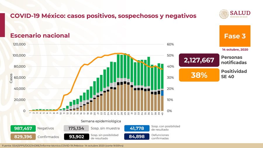 🔊 Escuchar esto La Secretaría de Salud federal reportó la noche de este miércoles 478 muertes más por coronavirus Covid-19 en México, con lo que suman 84 mil 898, mientras que el número de casos acumulados durante la pandemia llegó a 829 mil 396, 4 mil 56 que el martes. La Secretaría de Salud de Guanajuato (SSG) reportó por su parte que se registraron 14 decesos más, con lo que el total es de 3 mil 46 en la entidad En conferencia, el director de Epidemiología federal, José Luis Alomía, dijo que la Ciudad de México y el Estado de México son las entidades con mayor número de casos activos estimados (con fecha de inicio de los últimos 14 días por el índice de positividad, por entidad y semana epidemiológica). A nivel nacional se calculan 41 mil 008 contagios. Para esta semana 40 de la pandemia hay más de 2 mil defunciones sospechosas que podrían sumarse al total en las próximas horas. También contabilizaron 987 mil 457 casos negativos, 41 mil ,778 sospechosos con posibilidad de resultado y pacientes 603 mil 827 recuperados de un total de dos millones 127 mil 667 valoraciones médicas. La Ciudad de México, el Estado de México, Veracruz, Puebla, Baja California, Jalisco, Sinaloa, Nuevo León, Guanajuato y Sonora son las 10 entidades que han registrado el mayor número de defunciones y que en conjunto representan más de la mitad (63.3 por ciento) de todas las del país. La Ciudad de México por sí sola, acumula 16.7 por ciento de todas defunciones a nivel nacional. La capital y Nuevo León son las entidades con mayor número de casos activos, seguidas de Jalisco, Coahuila que asciende un sitio, Estado de México y Guanajuato, como las entidades con más de mil casos activos y que en su conjunto concentran más de la mitad (51 por ciento) de los casos activos del país. Los casos confirmados en el mundo son 38 millones 411 mil 907, de acuerdo con la Universidad Johns Hopkins. LEÓN, CON 1,070 MUERTOS Por su parte, la Secretaría de Salud de Guanajuato (SSG) informó que la cifra de muertos en la entidad por Covid-19 llegó a 3 mil 46, es decir, 14 más que el martes. En cuanto a los contagios, la dependencia estatal reportó 156 más en las últimas 24 horas, por lo que el total es de 45 mil 486 acumulados desde que arribó la pandemia a la entidad. El municipio de León llegó a mil 70 muertos, tras reportar tres más que el martes, mientras que los contagios en el municipio llegaron a 15 mil 451 casos acumulados. Las defunciones por municipio quedan así: León 1,070 Irapuato 311 Celaya 292 Salamanca 181 Silao 170 Guanajuato capital 81 Sn. Fco. Del Rincón 64 Cortazar 64 Sn. Luis de la Paz 62 Valle de Santiago 54 Dolores Hidalgo 53 Pénjamo 53 Salvatierra 49 Juventino Rosas 45 Villagrán 39 Acámbaro 36 Apaseo el Grande 36 Romita 35 Sn. Miguel de Allende 34 San Felipe 33 Abasolo 29 Purísima del Rincón 25 San José Iturbide 22 Yuriria 22 Comonfort 21 Manuel Doblado 21 Moroleón 18 Uriangato 17 Apaseo el Alto 15 Jaral del Progreso 14 Ocampo 12 Cuerámaro 10 Huanímaro 9 Doctor Mora 7 Jerécuaro 7 Sn. Diego de la Unión 7 Tarimoro 6 Santiago Maravatío 5 Victoria 5 Tarandacuao 4 Tierra Blanca 4 Xichú 3 Pueblo Nuevo 1 Compartir Navegación de entradas Suma México solo 173 muertos por Covid-19; Guanajuato 15 más El primer gran amor de una mujer; su padre