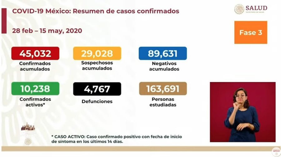 🔊 Escuchar esto La Secretaría de Salud federal reportó la noche de este viernes 290 nuevas muertes por coronavirus Covid-19 en México, con lo que suman 4 mil 767, mientras que los casos confirmados llegaron a 45 mil 32 en el país, 2 mil 437 más que el jueves. La Secretaría de Salud de Guanajuato (SSG) reportó dos defunciones más para llegar a 71, mientras que los contagios llegaron a 841 este viernes, 48 más que el jueves. [read more=”Leer más” less=”Leer menos”] 🔊 Nota completa La nueva cifra de muertos en México supera a los 4 mil 637 que registraba hasta este viernes China, según cifras de la Universidad de Johns Hopkins. En el país asiático, el brote inició a finales del año pasado, mientras que en México, el primer caso confirmado se dio el 22 de enero de este año. En conferencia desde Palacio Nacional, José Luis Alomía Zegarra, director general de Epidemiología, dio a conocer que además de estas defunciones hay 462 dos sospechosas. La Secretaría de Salud en México informó este viernes que la cifra de contagios subió a 45 mil 32 casos confirmados. En la Ciudad de México, el centro de la epidemia en el país, se alcanzaron los 12 mil 456 casos. Mientras que en el Estado de México son 7 mil 570 y Baja California con 3 mil 40. En tanto, los casos activos son 10 mil 238 hasta este viernes. Baja California se unió este viernes al grupo de entidades con más de 3 mil casos confirmados de coronavirus. Por otra parte, a nivel nacional hay aún 14 mil 408 camas para pacientes graves disponibles y 8 mil 233 camas de atención general ocupadas, un porcentaje de ocupación del 33 por ciento, dijo Alomía. GUANAJUATO SIN FRENO La Secretaría de Salud de Guanajuato (SSG) reportó 71 defunciones por Covid-19 y en las últimas 24 horas se confirmaron 48 casos nuevos por el virus, por lo que se han registrado 841 personas contagiadas. De acuerdo con el último corte, la SSG dijo que hay en la entidad 692 casos de contagio comunitario. Se reportaron además dos defunciones; la primera ocurrió en el Hospital General Zona 4 del IMSS en Celaya, de un hombre de 57 años, originario de Jaral del Progreso, quien tenía antecedentes de tabaquismo, y el segundo es de otro hombre 56 años, residente de Celaya, el cual murió en el mismo hospital. Las ciudades de León, Salamanca y Celaya son las que más casos de contagios tienen con 251, 103 y 74, respectivamente. Le siguen Irapuato con 69; Romita con 39; San Luis de la Paz con 29; Acámbaro con 28; Silao con 23; Juventino Rosas con 21; Moroleón con 19; Salvatierra y Valle de Santiago con 17, cada uno; Jaral del Progreso con 15; San Francisco del Rincón con 13; Uriangato con 12; Guanajuato Capital y Cortazar con 11 cada uno; San Miguel de Allende, Yuriria y San Diego de la Unión con 10 cada uno; Pénjamo con 9; Apaseo el Grande con 7; San Felipe con 6; Tarandacuao con 5; Abasolo con 4; Apaseo el Alto, Dolores Hidalgo y Santiago Maravatío con 3 cada uno; Comonfort, Coroneo, Doctor Mora y Huanímaro con 2 cada uno; Atarjea, Cuerámaro, Jerécuaro, Manuel Doblado, Ocampo, San José Iturbide, Tarimoro, Victoria y Villagrán con uno cada uno. Hay 2 Foráneos. Hay actualmente 704 casos bajo investigación, se han descartado 7 mil 340 casos, y 241 se han recuperado. Las defunciones por municipio quedan así: Celaya 19 Salamanca 10 León 7 Acámbaro 5 Sn. Luis de la Paz 5 Moroleón 3 Cortazar 3 Irapuato 3 Guanajuato capital 2 Juventino Rosas 2 Sn. Fco. Del Rincón 2 Jaral del Progreso 2 Abasolo 1 Apaseo el Grande 1 Pénjamo 1 Romita 1 Salvatierra 1 Silao 1 Valle de Santiago 1 Yuriria 1 [/read] Compartir