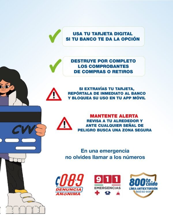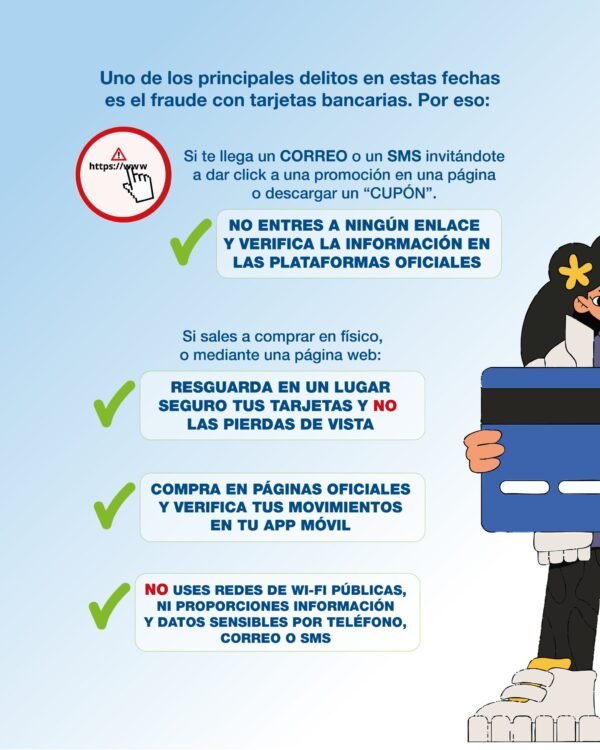 La Secretaría de Seguridad y Paz de Guanajuato hizo un llamado a la población a cuidarse de ofertas engañosas a fin de no ser víctimas de delitos financieros durante el programa El Buen Fin. La dependencia estatal emitió una serie de recomendaciones para la jornada de compras y a revisar bien la procedencia de los artículos que se ofertan este fin de semana. Uno de los principales delitos es el fraude con tarjetas bancarias, y ante el incremento de ofertas, muchas de ellas ofrecen meses sin intereses u otras promociones comprando a través de portales, por lo que es necesario poner en práctica algunas medidas de prevención, explicó. Estos delitos se cometen principalmente al usarla sin autorización previa del titular, a quien generalmente le roban sus datos de forma física o electrónica. AGUAS CON LOS PLÁSTICOS Los fraudes más comunes con las tarjetas de crédito se realizan mediante correos que se envían a los buzones electrónicos para invitar a las víctimas potenciales a entrar a una página de internet o descargar un documento. A quienes acceden, les roban la información o datos personales, añadió Seguridad y Paz en su comunicado. Otra forma es el envío de un mensaje SMS que llega directamente al número de teléfono para obtener datos de las y los usuarios de tarjeta. TOMA NOTA DE LAS RECOMENDACIONES Resguardo en un lugar seguro de tu tarjeta de crédito y NIP Revisar constantemente los movimientos de las cuentas bancarias Comprar en páginas seguras y no usar redes wifi públicas o computadoras de otras personas Al realizar pagos en comercios, no perder de vista la tarjeta No proporcionar información de tu tarjeta de crédito por teléfono, mensaje de texto o correo. Al tirar los estados de cuenta o cualquier comprobante, destruirlos Si el banco ofrece la posibilidad, descarga la aplicación para contar con tu tarjeta CUIDADO EN LAS CALLES Ante los descuentos ofrecidos en tiendas comerciales, es importante también que consideren medidas de autoprotección y cuidado al caminar por estos sitios públicos, con tus compras realizadas. (Fotos: La Jornada y Seguridad y Paz) Compartir Navegación de entradas Crece 4.5% actividad en el Aeropuerto de Guanajuato En el Buen Fin, no te olvides de la Marca Guanajuato