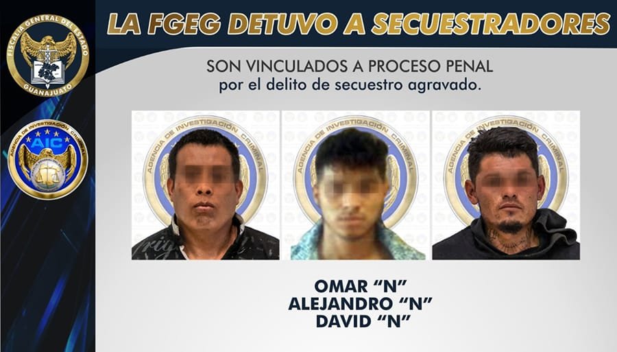 🔊 Escuchar esto Tres peligrosos sujetos que mantenían secuestrada a una mujer fueron vinculados a proceso después de que fueron detenidos por agentes de Investigación Criminal de la Fiscalía General de Guanajuato (FGE). En un comunicado, la FGE dijo que Omar “N”, Alejandro “N” y David “N” fueron acusados por el delito de secuestro cometido en Apaseo el Alto. El pago de rescate que pedían los tres sujetos no se concretó gracias a la denuncia interpuesta, lo cual derivó en una investigación que culminó con el recate de la víctima y la detención de sus captores. En su exposición durante las audiencias judiciales celebradas por videoconferencia, el Agente del Ministerio Público dio a conocer las pruebas que se integraron en la carpeta de investigación. EXTORSIONADORES VIOLENTOS Los delincuentes, al tener secuestrada a la víctima, realizaron decenas de llamadas altamente violentas a la familia con la finalidad de hacer cumplir sus exigencias. El calvario de la víctima y familiares concluyó el 16 de septiembre pasado, cuando fue liberada por los agentes de la FGE y puesta a salvo. Al culminar la audiencia, el juzgador consideró que el material probatorio es suficiente para vincularlos a proceso penal por el delito de secuestro agravado. Estos sujetos permanecerán en la cárcel en tanto se lleva a cabo la investigación complementaria. Los criminales podrían alcanzar una pena mínima de 50 años y una máxima de 100 años de cárcel. Compartir