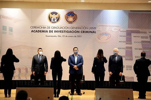 🔊 Escuchar esto Es la primera generación que egresa en Guanajuato con doble encomienda: como agentes preventivos de las Fuerzas de Seguridad del Estado (FSPE) y como agentes de Investigación Criminal (AIC). Son 24 elementos, pertenecientes a la Generación 78, que se graduaron tras concluir el curso de formación inicial que ofrece la Academia de Investigación Criminal de la Fiscalía General del Estado (FGE). Esta primera generación de personal operativo adscrito a las FSPE está conformado por 11 mujeres y 13 varones, quienes además de contar con la formación inicial y continua como policía estatal preventivo, tienen también la alta capacidad de resguardar, recopilar, analizar y procesar información. Esta preparación forma parte del marco del Nuevo Sistema de Justicia Penal Acusatorio. Los 24 elementos de las FSPE son también entre los cuerpos de seguridad pública en Guanajuato, los primeros en complementar su formación mediante un nuevo perfil al concluir sus estudios académicos como Agentes de Investigación Criminal, luego de las 900 horas del programa de estudios de la AIC para obtener este certificado. CEREMONIA CONJUNTA La graduación de los elementos de FSPE se llevó a cabo junto con otros 116 elementos de la AIC, en una ceremonia presidida por el gobernador Diego Sinhue Rodríguez Vallejo, el Fiscal General del Estado, Carlos Zamarripa Aguirre, el secretario de Seguridad Pública del Estado, Álvar Cabeza de Vaca Appendini, y el secretario de Gobierno, Luis Ernesto Ayala. En su mensaje, el gobernador llamó a los egresados a trabajar para mantener a la Fiscalía General del Estado de Guanajuato en el nivel más alto de combate a la delincuencia y por ende, el más alto nivel de combate a la impunidad. Siéntense orgullosos de pertenecer a la mejor Fiscalía del país”, dijo Rodríguez Vallejo, durante la ceremonia de Clausura de la Generación 78. PREPARACIÓN DE ALTO NIVEL A fin de poder graduarse como Agentes de Investigación Criminal, los elementos de las Fuerzas de Seguridad Pública del Estado cursaron infinidad de materias: Estas fueron Ética profesional Ciencia jurídica Sistema de Justicia Penal Acusatorio Investigación de los delitos Técnica policial ACADEMIA DE PRIMERA CLASE La Academia de Investigación Criminal brinda capacitación y estrategias para formar elementos altamente capacitados para resguardar, recopilar, analizar y procesar información, dentro del marco del Sistema de Justicia Procesal Penal para combatir el delito y la impunidad. Las y los egresados recibieron los cursos de: Formación Inicial para Agentes de Investigación Criminal Análisis y Procesamiento de la Escena del Crimen Capacitación para Operadores del Sistema de Justicia Procesal Penal Capacitación en materia de Derechos Humanos, en colaboración con la Procuraduría de los Derechos Humanos del Estado de Guanajuato Especialización del personal en las áreas de Atención a Niñas, Niños y Adolescentes para personal adscrito a las FSPE. El gobernador entregó también reconocimientos a 3 docentes, a los 3 mejores promedios de esta generación conformada por 152 nuevos Agentes de Investigación Criminal, Analistas de Información y personal de las FSPE especializados en el Sistema Integral de justicia para adolescentes. 128 pertenecen a la Agencia de Investigación Criminal y 24 a las FSPE. Compartir
