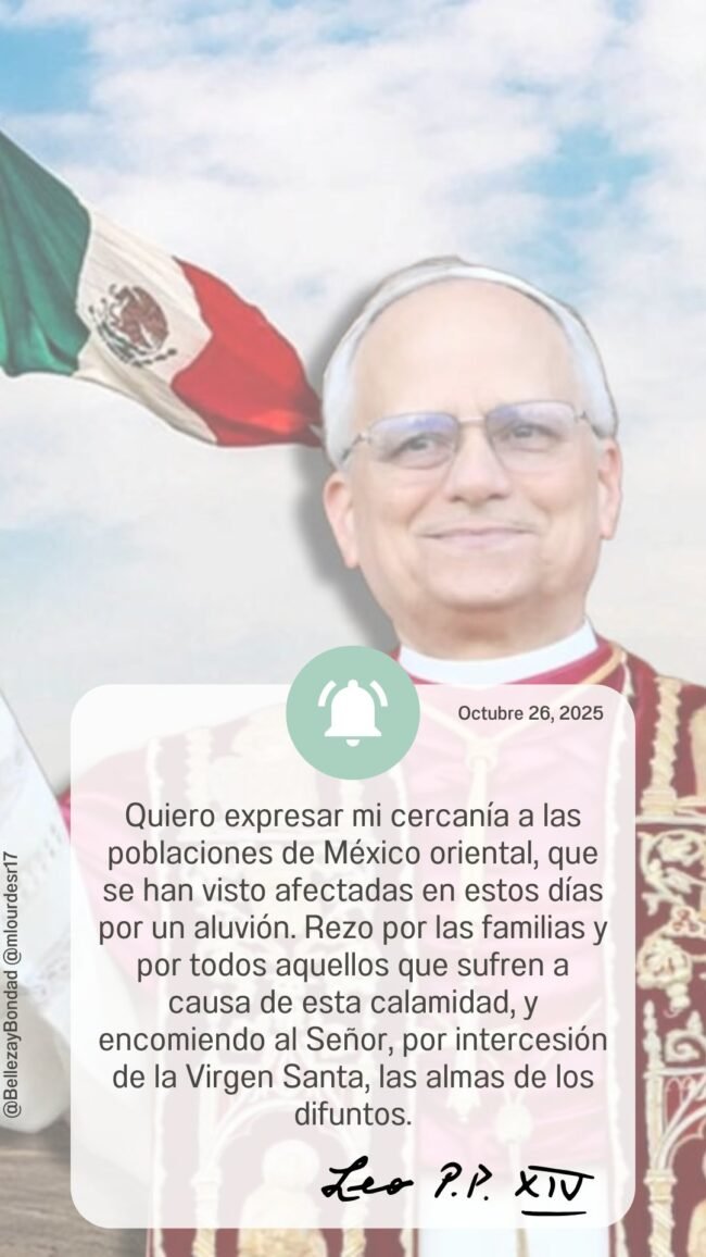 El Papa León XIV ha expresado su cercanía y solidaridad con los damnificados por las lluvias torrenciales en cinco estados de México, en los que han muerto al menos 80 personas. “Expreso mi cercanía y afecto a las poblaciones del México oriental afectadas en los últimos días por los aluviones. Rezo por las familias y por todos aquellos que han sufrido por esta calamidad”, dijo el Pontífice el domingo tras el rezo del Ángelus, asomado a la ventana del Palacio Apostólico. Asimismo, confió a la intercesión de la Virgen María “las almas de los difuntos”. SON 80 LOS FALLECIDOS Las lluvias torrenciales en cinco estados mexicanos, sobre todo en el de Veracruz, se han saldado con al menos 80 personas muertas, así como alrededor de 18 desaparecidos. La Secretaría de Educación Pública (SEP) informó que 182 mil 610 estudiantes han vuelto a clases presenciales, tras las lluvias que provocaron afectaciones en más de 2 mil 400 planteles educativos. (Fotos: Tomadas de Latinus y redes sociales) Compartir Navegación de entradas Desactivado el riesgo de más aranceles de EU Cae sujeto que atacó en fiesta y extorsionaba