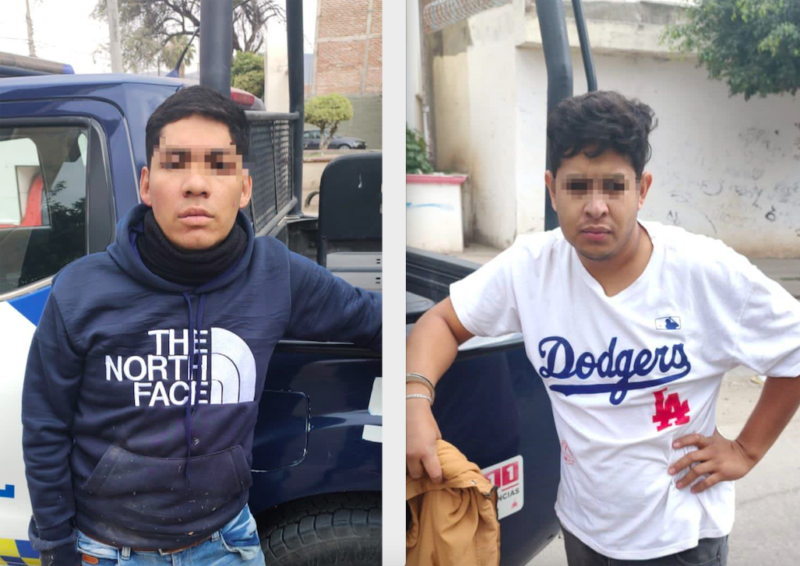 Tras un ciudadano, elementos de la Policía de León, Guanajuato, detuvieron a dos sujetos armados que amenazaron al empleado de una tienda para que hiciera depósitos en tarjetas bancarias. El par de sujetos ingresó a una tienda Oxxo de la colonia Colinas del Carmen, donde amagaron con una pistola al responsable de la atención a los clientes para exigirle que hiciera depósitos de 5 mil pesos en dos tarjetas bancarias. Elementos preventivos y personal de la Guardia Nacional iniciaron operativo de búsqueda en la zona, con la información y características de los extorsionadores que se recabó en el lugar. DETENIDOS DE INMEDIATO En la calle Potrero del Pozo se logró la detención de Eduardo, de 29 años, con domicilio en la colonia El Coecillo, y de José Armando, de 26 años, de la colonia Loma Hermosa. Ambos coincidían con los hombres descritos por el afectado y en una revisión preventiva se les aseguró el arma de fuego corta con seis cartuchos. Ambos fueron reconocidos por la víctima como los responsables del delito y se coordinó con directivos de la cadena comercial para emprender las acciones legales correspondientes ante la Fiscalía General del Estado. Compartir Navegación de entradas Guardia Nacional anuncia patrullajes en la México-Querétaro Obligado cambio de reglas en industria automotriz