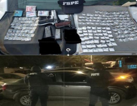 • En la comunidad El Caracol se detuvo a 2 sujetos con 2 armas, 2 cargadores, 14 cartuchos, 186 dosis de drogas sintéticas y un vehículo.