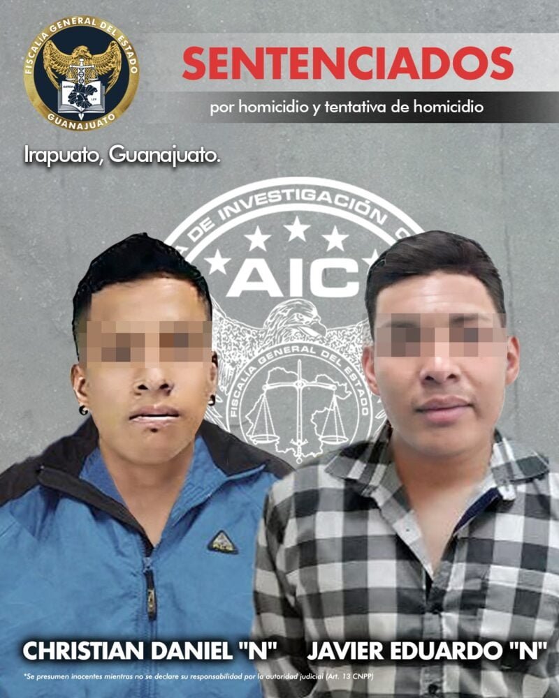 La Fiscalía General del Estado de Guanajuato (FGEG) logró que un par de presuntos sicarios fueran sentenciados a 20 años de prisión por homicidio y tentativa de homicidio.