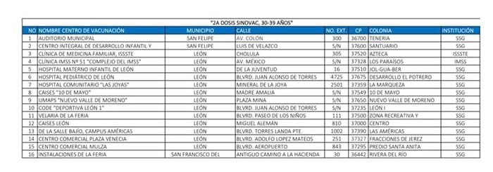 Nueva jornada de vacunación en 16 municipios de Guanajuato. La Secretaría de Salud de Guanajuato (SSG) informó que la vacunación va para personas de 30 a 39 años de edad en segundas dosis a partir de este miércoles 18.