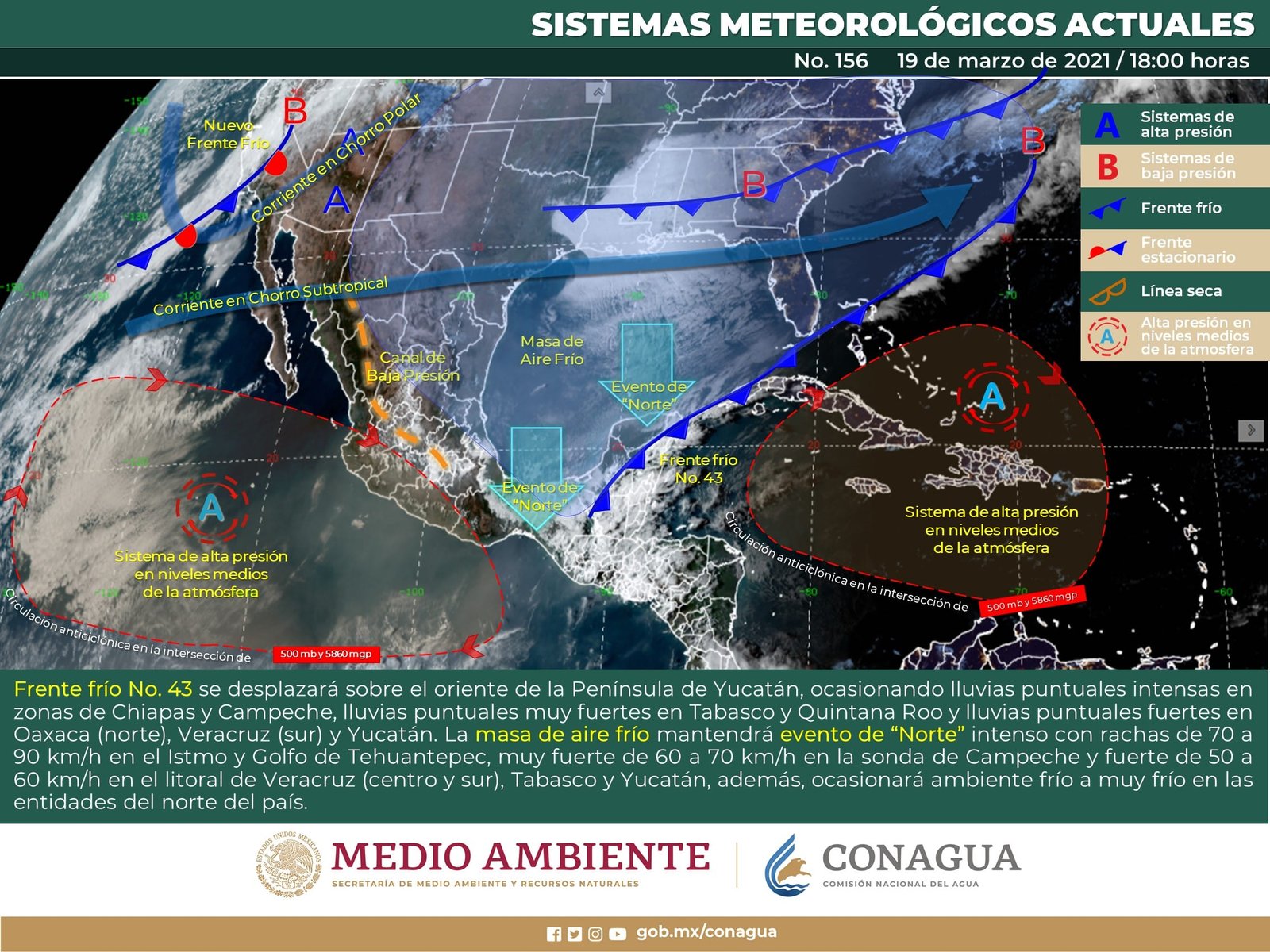 🔊 Escuchar esto Guanajuato mantendrá este sábado altas temperaturas durante el día con máximas de 29 grados, aunque se registrarán rachas de viento vespertinas, dio a conocer el Servicio Meteorológico Nacional (SMN). De acuerdo con su último reporte, el organismo dependiente de la Conagua pronostica que la Mesa Central del país tendrá cielo medio nublado a nublado durante el día con probabilidad de chubascos solo en Puebla, así como lluvias aisladas en Querétaro, Hidalgo, Tlaxcala y Morelos. El ambiente de frío a fresco proseguirá al amanecer en las zonas montañosas y cálido a caluroso durante el día. El viento de dirección variable de 15 a 30 km/h traerá rachas de 40 a 50 km/h, principalmente durante la tarde. NORESTE DE GUANAJUATO CON NUBLADOS El reporte indica que Guanajuato seguirá con altas temperaturas y con algunos nublados durante la tarde que estarán acompañados de rachas de viento. Los municipios de León, Manuel Doblado, Irapuato, Salamanca, Celaya, Dolores Hidalgo, Comonfort, Guanajuato capital y Silao tendrán entre 28 y 29 grados máxima, con mínimas promedio de 9 grados. Por el contrario, los municipios del noreste del estado continuarán con bajas temperaturas durante la noche y madrugada con 6 y 7 grados promedio. Las máximas en demarcaciones como San Miguel de Allende, San Luis de la Paz y Sal Felipe serán de 23 grados con mínimas de 5 grados promedio. FRENTE FRÍO CAUSARÁ NEBLINA Para el resto del país, el SMN dijo que una masa de aire frío asociada al frente No. 43 generará bancos de nieblas matutinos en la Sierra Madre Oriental. También causará ambiente frío en el norte, noreste, centro y oriente de la República Mexicana, lluvias y chubascos dispersos sobre entidades del centro, oriente y sureste del país. Se espera también evento de “Norte” en el Istmo y Golfo de Tehuantepec, condición que disminuirá gradualmente, ya que se pronostica que la masa de aire, modifique sus características térmicas durante la tarde. SE APROXIMA OTRO FRENTE Un nuevo frente frío (No. 44) ingresará y recorrerá el noroeste del país, en interacción con un pulso de la corriente en chorro subtropical, ocasionará rachas fuertes de viento y descenso de temperatura en dicha región. Circulación anticiclónica en niveles medios de la atmósfera mantendrá ambiente caluroso a muy caluroso en el occidente, sur y sureste de la República Mexicana, incluida la Península de Yucatán, con temperaturas máximas de 40 a 45 °C en Michoacán y Guerrero. Los sistemas meteorológicos ocasionarán este sábado: Intervalos de chubascos (5.1 a 25.0 mm) en los estados de Puebla, Veracruz, Oaxaca, Chiapas y Quintana Roo. Lluvias aisladas (0.1 a 5.0 mm) en San Luis Potosí, Querétaro, Hidalgo, Ciudad de México, Tlaxcala, Morelos, Guerrero, Tabasco y Campeche. Evento de “Norte” con rachas de 70 a 90 km/h en el istmo y Golfo de Tehuantepec. Viento con rachas de 50 a 60 km/h en Baja California, Baja California Sur, Chihuahua, Coahuila, Nuevo León, Zacatecas, Aguascalientes y San Luis Potosí. Oleaje de 2 a 4 metros de altura significante en Golfo de Tehuantepec. Temperaturas máximas de 40 a 45 °C en Michoacán y Guerrero. Temperaturas máximas de 35 a 40 °C en Sonora (sur), Sinaloa, Nayarit, Jalisco, Colima, Morelos, Puebla (suroeste), Oaxaca (costa) y Chiapas (costa). Temperaturas mínimas para la madrugada del domingo de -5 a 0 °C con heladas en las zonas montañosas de Baja California, Chihuahua y Durango. Temperaturas mínimas para la madrugada del domingo de 0 a 5 °C y posibles heladas en zonas montañosas de Sonora, Coahuila, Zacatecas, Aguascalientes, Guanajuato, Estado de México, Puebla y Oaxaca. Compartir