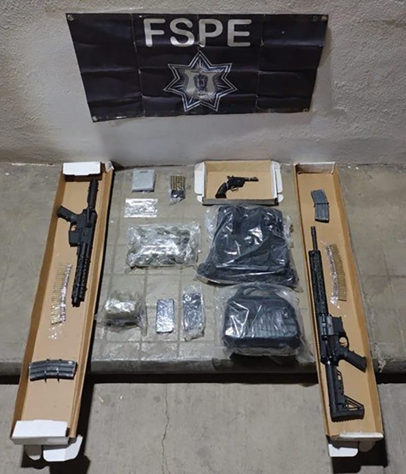 Los detenidos, las armas, los cartuchos, el equipo táctico, la droga, la báscula gramera y el vehículo, fueron puestos a disposición de la autoridad competente.