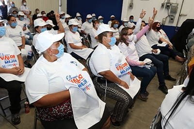 🔊 Escuchar esto Con la confianza de las trabajadoras de planta elaboradora de uniformes industriales, la candidata del PAN al municipio de Irapuato, Lorena Alfaro, resaltó que construirá su gobierno enfocado en la prevención. Al continuar con su campaña con miras a la jornada electoral del 6 de junio, Alfaro sostuvo encuentro con las mujeres trabajadores, quienes externaron a la candidata la necesidad de atender la seguridad de ellas en sus traslados al trabajo. “Cuando detectemos los problemas en las colonias hay que atenderlos, hay que entrar ahí, intervenir los barrios, apropiarnos del espacio público, que nuestros parques vecinales estén vivos, que ahí se practique el deporte y se lleve la cultura y el arte, que cuando se acerquen los que no van a hacer buen uso de ellos se vayan”, dijo la candidata en su mensaje. REACTIVACIÓN CON APOYOS SOCIALES Además, Alfaro mencionó que buscará incidir en la reactivación de apoyos sociales destinados a mujeres trabajadoras como guarderías infantiles o refugios para mujeres maltratadas, programas que ya existían y fueron eliminados por gobiernos irresponsables. Rescate de espacios públicos como parques, jardines y áreas destinadas al deporte en las colonias, para evitar el mal uso de estos y prevenir la delincuencia, fueron las propuestas que Lorena mencionó frente a las trabajadoras. Compartir Navegación de entradas Batea “La Reinota” invitación para participar en spots de Morena Más recursos a seguridad, salud y a la reactivación en León, propone candidata