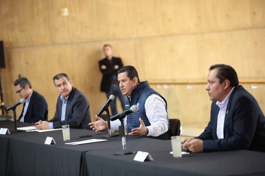 🔊 Escuchar esto Trabajo coordinado entre autoridades estatales y empresarios en Guanajuato para enfrentar la contingencia causada por la pandemia del coronavirus Covid-19. En una muestra del respaldo del gobierno estatal a los sectores productivos y de servicios de Guanajuato, el gobernador Diego Sinhue Rodríguez Vallejo sostuvo una reunión de trabajo con integrantes de la Concamín Bajío en la ciudad de León. [read more=”Leer más” less=”Leer menos”] 🔊 Nota completa Rodríguez Vallejo, acompañado del secretario de Desarrollo Económico Sustentable, Mauricio Usabiaga Díaz Barriga; del Secretario de Salud, Daniel Díaz Martínez; y del presidente de Concamín Bajío, Ismael Plascencia Núñez; presentó las reglas de operación del Programa “Impulso Económico ante contingencia del Covid-19” y las acciones de prevención por parte del sector salud. A fin de apoyar a los comerciantes, empresarios medianos y grandes, emprendedores, microempresarios, empleados de los sectores productivos y de servicios, el Estado de Guanajuato está destinando más de 800 millones de pesos. Para ello, se implementará una prórroga para el pago correspondiente a los dos meses siguientes del Impuesto Sobre Nómina (ISN) para ser cubiertos, sin ningún recargo, a partir de julio. Se presentaron las reglas de operación del Programa Especial de Empleo Temporal, el Programa Innovador de Créditos para emprendedores, MIPYMES y grandes empresas, así como del Programa Reembolso de Intereses. La Secretaría de Desarrollo Económico, Fondos Guanajuato y de la Secretaría de Desarrollo Social y Humano pusieron a disposición de la Concamín Bajío estos incentivos y programas para que las empresas mantengan los empleos y servicios. En el encuentro, el titular de la Secretaría de Salud de Guanajuato (SSG), Daniel Díaz Martínez, reiteró la importancia de mantener las acciones de prevención por parte de los empresarios para contener la propagación del virus. Además, destacó el trabajo que hace Guanajuato para la atención de la pandemia con la operación del Hospital Estatal de Atención Covid-19, el primero a nivel nacional. [/read] Compartir