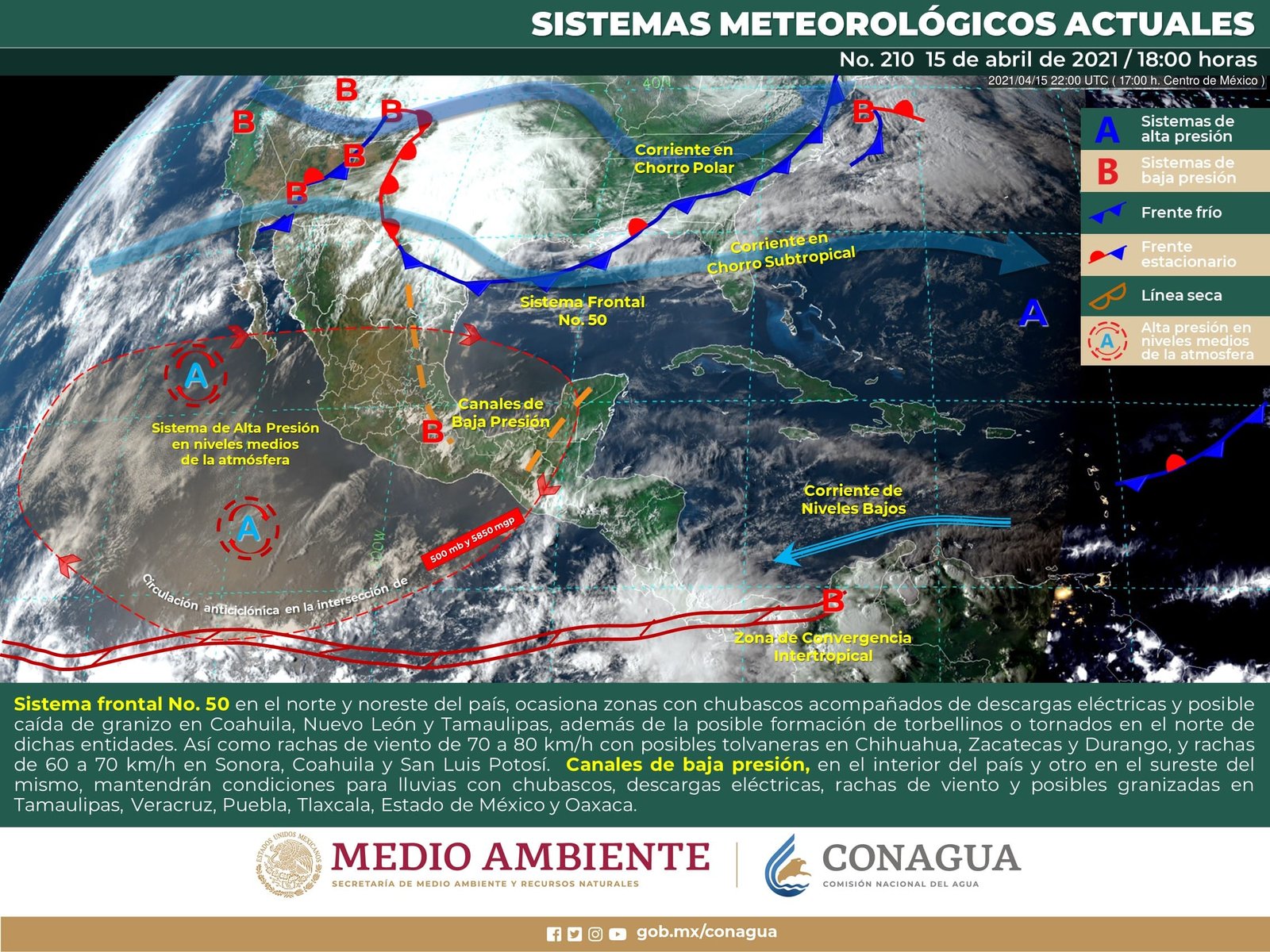 🔊 Escuchar esto Guanajuato continuará este viernes bajo una intensa ola de calor que llevará los termómetros hasta los 35 grados y nula probabilidad de lluvia, dio a conocer el Servicio Meteorológico Nacional (SMN). De acuerdo con su último reporte, el organismo dependiente de la Comisión Nacional del Agua (Conagua) pronostica que la Mesa Central del país tendrá cielo despejado por la mañana, medio nublado por la tarde con probabilidad para intervalos de chubascos solo en Puebla y lluvias aisladas en Hidalgo, Morelos y Tlaxcala. Sin cambios seguirá el ambiente frío al amanecer en las zonas montañosas y caluroso a muy caluroso por la tarde con viento de dirección variable de 10 a 25 km/h en gran parte de le región y rachas de hasta 50 a 60 km/h en Guanajuato. GUANAJUATO SIN LLUVIA El reporte indica que la entidad mantendrá sus altas temperaturas con cielos despejados a lo largo del día con apenas 5 por ciento de probabilidad de lluvia. Todos los municipios, con excepción de los del noreste y suroeste, tendrán máximas promedio de 33 grados con algunas rachas de viento vespertinas. Las mínimas promediarán los 13 y 14 grados. Las zonas del noreste y suroeste tendrán máximas hasta de 36 grados con algunas rachas de viento y mínimas de 11 y 12 grados durante la noche y madrugada del sábado. SE VA FRENTE 50 Para el resto del país, el SMN dijo que el frente No. 50 con características de cálido, se desplazará hacia Texas y dejará de afectar al territorio nacional. Una línea seca durante la mañana se extenderá sobre Coahuila y durante la tarde interactuará con el ingreso de un nuevo frente frío en la frontera norte de México. Estos fenómenos provocarán fuertes rachas de viento con tolvaneras en el norte y noreste del país, así como chubascos y lluvias puntuales fuertes acompañadas de descargas eléctricas y posible caída de granizo en Coahuila, Nuevo León y Tamaulipas. CHUBASCOS EN EL ORIENTE Asimismo, un canal de baja presión en interacción con la entrada de humedad del Golfo de México y el calentamiento diurno, ocasionará lluvias y chubascos vespertinos acompañados de descargas eléctricas y posibles granizadas, sobre entidades del centro, oriente y sureste del país, con lluvias puntuales fuertes en Puebla, Oaxaca y Chiapas. HABRÁ ZONA CON 45 GRADOS Finalmente, una circulación anticiclónica en niveles medios de la atmósfera mantendrá el ambiente diurno cálido a muy caluroso sobre gran parte del país, prevaleciendo onda de calor sobre entidades del noreste, oriente, sur y sureste del país, incluida la Península de Yucatán, con temperaturas máximas de 40 a 45 °C en zonas de Tamaulipas, San Luis Potosí, Veracruz, Michoacán, Guerrero, Oaxaca, Chiapas, Tabasco, Campeche y Yucatán. Los sistemas meteorológicos ocasionarán este viernes: Intervalos de chubascos con lluvias puntuales fuertes (25.1 a 50.0 mm) en los estados de Coahuila, Nuevo León, Tamaulipas y Chiapas. Intervalos de chubascos (5.1 a 25.0 mm) en Puebla y Oaxaca. Lluvias aisladas (0.1 a 5.0 mm) en Chihuahua, Hidalgo, Estado de México, Morelos, Tlaxcala y Veracruz. Tormentas eléctricas en Coahuila, Nuevo León, Tamaulipas, Hidalgo, Estado de México, Morelos, Tlaxcala, Puebla, Veracruz, Oaxaca y Chiapas. Viento con rachas de 60 a 70 km/h y tolvaneras en Chihuahua, Coahuila, Durango, Zacatecas, San Luis Potosí, Veracruz y Oaxaca. Viento con rachas de 50 a 60 km/h en Baja California, Baja California Sur, Nuevo León, Tamaulipas, Aguascalientes, Jalisco, Guanajuato, Tabasco, Campeche, Yucatán y Quintana Roo. Temperaturas máximas de 40 a 45 °C en Nuevo León, Tamaulipas, San Luis Potosí, Querétaro (norte), Hidalgo (norte), Puebla (norte), Veracruz, Michoacán, Guerrero, Oaxaca, Chiapas, Tabasco, Campeche y Yucatán. Temperaturas máximas de 35 a 40 °C en Coahuila, Sinaloa, Nayarit, Jalisco, Colima, Guanajuato (noreste), Estado de México (suroeste), Morelos y Quintana Roo. Temperaturas mínimas para la madrugada del sábado de -5 a 0 °C y heladas en las zonas montañosas de Chihuahua y Durango. Temperaturas mínimas para la madrugada del sábado de 0 a 5 °C y posibles heladas en zonas montañosas de Sonora, Coahuila, Zacatecas y Estado de México. Compartir