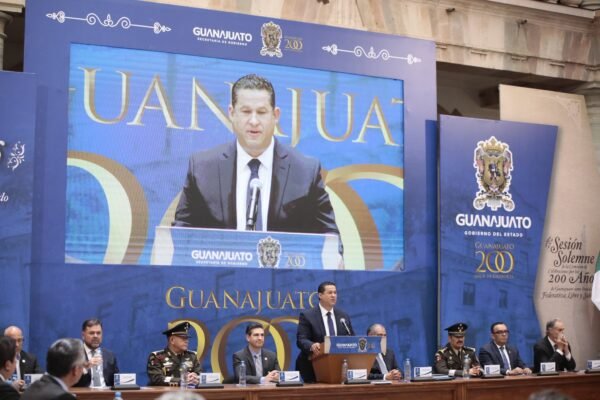 “Hace dos siglos, el 8 de mayo de 1824, se nombró al primer titular del Ejecutivo Estatal”, dijo el mandatario durante la sesión realizada en el Museo Regional Guanajuato Alhóndiga de Granaditas.