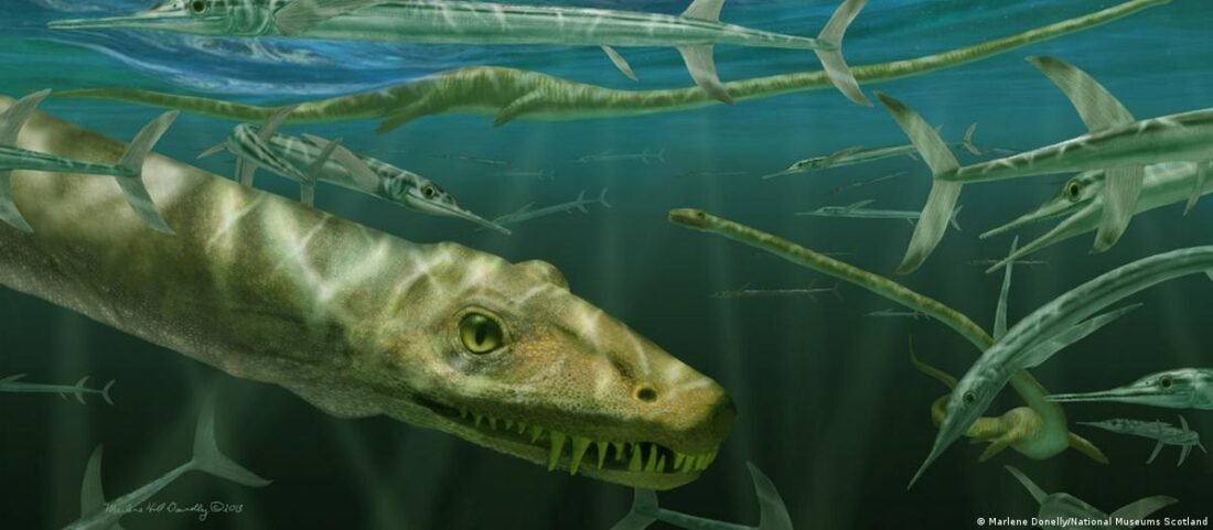 Un grupo de paleontólogos ha descrito una antigua criatura marina de cuello largo que vivió hace unos 240 millones de años en Guizhou, al sur de China. Su estudio acaba de ser publicado en la revista Earth and Environmental Science: Transactions of the Royal Society of Edinburgh, citada por DW Español. Los investigadores han clasificado a esta especie como un “Dinocephalosaurus orientalis”, un animal marino que tenía un cuello extraordinariamente largo, con 32 vértebras separadas y que recuerda a un tradicional y colorido “dragón chino”. FIGURA MÍTICA “Este descubrimiento nos permite ver por primera vez en su totalidad a este extraordinario animal de cuello largo”, dijo el autor principal Nick Fraser, conservacionista de Ciencias Naturales del Museo Nacional de Escocia. “Es un ejemplo más del extraño y maravilloso mundo del Triásico, que sigue desconcertando a los paleontólogos”, añadió. “Estamos seguros de que cautivará la imaginación de todo el mundo por su llamativo aspecto, que recuerda al mítico dragón chino, largo y serpenteante”, destacó. El llamado “dragón chino” vivía en las profundidades del mar, poseía aletas y se alimentaba de peces, según demuestran los análisis realizados a su boca y dentadura y los restos de peces conservados en su estómago. UNA RARA ESPECIE El ejemplar del D. orientalis fue encontrado en 2003. Desde entonces, los investigadores estuvieron trabajando para determinar a qué especie pertenecía. Algunos investigadores pensaron que esta criatura marina podía estar emparentada con el Tanystropheus hydroides o con el famoso plesiosaurio, que también poseen un cuello largo. Sin embargo, el D. orientalis no está relacionado con estas especies antes mencionadas. “Entre todos los extraordinarios hallazgos que hemos realizado en el Triásico de la provincia de Guizhou, el Dinocephalosaurus destaca probablemente como el más notable”, dijo el coautor Li Chun, del Instituto de Paleontología de Vertebrados y Paleoantropología. (Fotos: Tomadas de DW Español) Compartir Navegación de entradas Detienen 53 narcomenudistas en 17 municipios de Guanajuato Zapateros de San Francisco, con potencial de tener marca propia