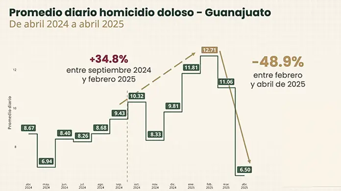 Autoridades estatales han destacado que, a partir de febrero de 2025, el promedio diario de homicidios pasó de 12.7 a 5.3 víctimas, una reducción cercana al 58 por ciento. Sin embargo, al considerar los indicadores oficiales acumulados, la disminución real frente a 2024 se mantiene en torno al 17.5 por ciento.