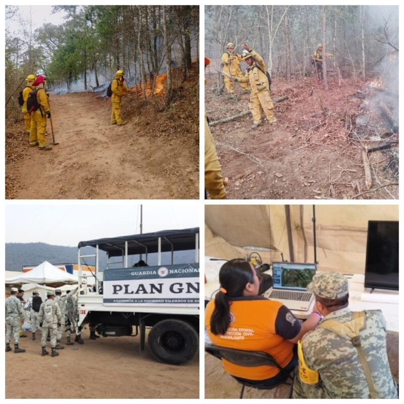 Brigadas de la Coordinación de Protección Civil de Guanajuato, que apoyan en los trabajos de combate del incendio forestal en la Reserva de la Biosfera Sierra Gorda en los límites de San Luis Potosí y Guanajuato, mantenían este lunes sus labores. Un comunicado de la dependencia estatal dijo que hasta el momento se tiene un control de 70 por ciento del siniestro. Protección Civil de Guanajuato mantiene la operación desde el Centro de Operaciones en la comunidad El Camarón, del municipio de Tierra Nueva, San Luis Potosí. Guanajuato opera desde ahí el Sistema Satelital de Comunicaciones con el cual tiene una cobertura de radiocomunicación con las brigadas de combatientes y comunicación permanente vía internet. DRON DE GRAN AYUDA Al momento, se han realizado nueve sobrevuelos con dron por parte de la Coordinación Estatal de Protección Civil para análisis y evaluación de la evolución del incendio y establecer las estrategias de operación. La Coordinación Estatal de Protección Civil mantiene la logística de traslado y dotación de insumos de alimentación. Este apoyo consiste en hidratación y alimentos sólidos al personal combatiente en coordinación con la SMAOT (Secretaría de Medio Ambiente y Ordenamiento Territorial), con la Coordinación Municipal de Protección Civil de San Luis de la Paz, así como con los voluntarios y donadores. SINIESTRO EN SIERRA DE LOBOS La Coordinación Estatal de Protección Civil también informó que, junto con otras instituciones, enviaron brigadas a la Sierra de Lobos, municipio de San Felipe, para combatir un incendio forestal. Este siniestro se registra en zona del predio La Virgen y al momento se tiene un control del 10 por ciento con una afectación de 30 hectáreas de encino, pino, sotol y manzanilla. Compartir Navegación de entradas Guanajuato es el primero nacional en picaduras de alacrán Escucha ciudadana, eje de los recorridos de Ale Gutiérrez