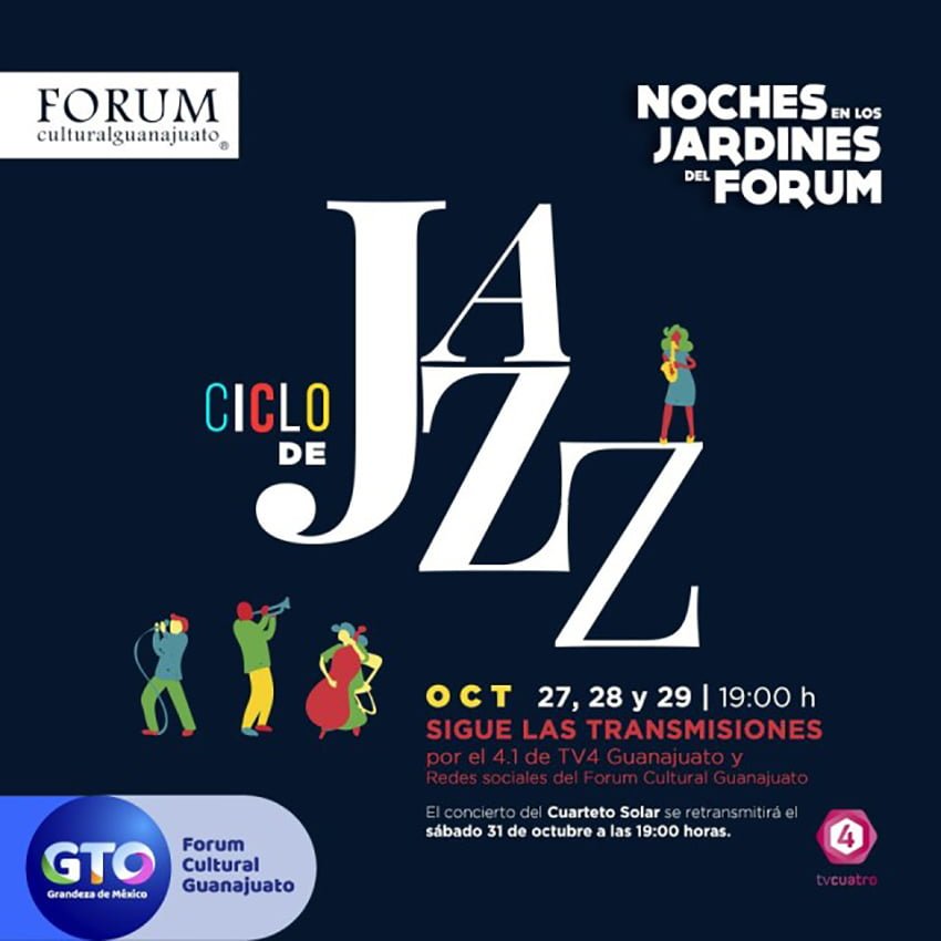 🔊 Escuchar esto Desde la noche de este martes y hasta el viernes 30 se presentarán algunos de los mejores grupos de jazz de Guanajuato. Como parte del ciclo de Jazz, bajo el programa Noches en los Jardines del Fórum se presentan cinco conciertos abiertos al público (con acceso controlado) que también se podrán disfrutar a través de la señal de TV4. El Fórum Cultural de León, Guanajuato, anunció que la serie se abre este martes a las 19:00 horas con el bajista Carlos Orozco, cuyas colaboraciones están presentes en más de 60 discos a nivel nacional e internacional. Su magia con el bajo eléctrico crea un recorrido sonoro de frecuencias graves e improvisación, musicalizando así el aquí y el ahora. Su discografía de solista consta de cuatro producciones: Chunky Family, Dios con el hombre, Morpho y Moiras. También este martes 27, pero a las 20:00 horas tocará el turno del Cuarteto Solar integrado por Luis Andrés Tovar Gómez en el violín; Francisco Hidalgo en la batería; Paulo Sergio Tovar Gómez en el contrabajo y Adalberto Tovar Gómez en el piano, tendrán como invitada especial a la cantante Tania Ugalde. Son ganadores de la beca FONCA en el año 2011, se han presentado en importantes festivales y encuentros escénicos nacionales e internacionales. JAZZ CON INSTRUMENTOS ORGÁNICOS El miércoles 28 a la 19:00 horas será el turno de Catching Planes, una banda originaria de León que trabaja con la combinación de instrumentos orgánicos (batería, bajo, guitarra y piano) y de textura sonidos electrónicos, esto genera un contraste musical entre lo orgánico y lo mecánico. El ciclo de jazz continuará el jueves 29 a las 19:00 horas con el grupo Gato Negro que nació de la inquietud de desarrollar un estilo de jazz originario de Europa. Tras seis años de trabajo y dos producciones discográficas, se ha dedicado a dar a conocer el Jazz Gitano. El cierre será el viernes 30 a las 19:00 horas con el Trío de Jazz dirigido por el bajista Antonio Lozoya, el cual interpreta sus propias composiciones y temas de jazz con arreglos musicales personales. SÍGUELOS POR TV4 Y REDES Todos los conciertos serán a las 19:00 horas y transmitidos en tiempo real por el 4.1 de TV4 y en el perfil de Facebook del Forum Cultural Guanajuato, a excepción del concierto del Cuarteto Solar que será retransmitido el sábado 31 de octubre a las 19:00 horas por los mismos canales. Compartir