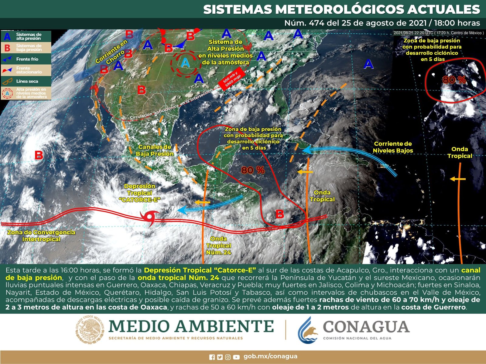 🔊 Escuchar esto Guanajuato tendrá este jueves día caluroso con temperaturas máximas hasta de 28 grados con baja probabilidad de lluvia, dio a conocer el Servicio Meteorológico Nacional (SMN). De acuerdo con su último reporte, el organismo dependiente de la Conagua pronostica que la Mesa Central del país registrará cielo parcialmente nublado e incremento de nubosidad hacia la tarde, con intervalos de chubascos en Querétaro, Hidalgo y Puebla, así como lluvias aisladas en Guanajuato, Tlaxcala y Morelos. Continuará sin cambios el ambiente fresco matutino en la región con temperaturas frías en sierras y montañas de Tlaxcala, Puebla e Hidalgo y cálido por la tarde con viento del este y noreste de 15 a 30 km/h con rachas de hasta 40 km/h en la región. NOCHE FRESCA EN GUANAJUATO El reporte indica que Guanajuato proseguirá con altas temperaturas durante el día y tarde con máximas hasta de 28 en varios municipios y muy baja probabilidad de lluvia. Todos los municipios del corredor industrial tendrán elevadas temperaturas promediando los 27 grados con humedad de 50 por ciento. Los municipios del noreste serán los que tengan día medio nublado con máximas de 24 grados y mínimas de 11 grados promedio durante la noche y madrugada del viernes. Se esperan rachas de viento nocturnas a lo largo de todo el estado. ALERTA DE PROBABLE HURACÁN Para el resto del país, el SMN dijo que una zona de baja presión con probabilidad para desarrollo ciclónico o posible ciclón tropical en el Océano Pacífico se localizará al sur de las costas de Guerrero y Michoacán. El fenómeno interaccionara con la onda tropical 24 que recorrerá el oriente y sur del territorio nacional y con la entrada de humedad del Océano Pacífico aumentará la probabilidad de lluvias fuertes a muy fuertes en el occidente, sur y sureste del país. También se esperan chubascos en el noroeste, noreste, oriente y centro del país, pronosticándose tormentas puntuales intensas en zonas de Michoacán, Guerrero, Oaxaca y Chiapas, además de rachas fuertes de viento y oleaje elevado en las costas de Michoacán, Guerrero y Oaxaca. INTERVALOS DE LLUVIAS EN EL SUR Por otra parte, un canal de baja presión sobre la Península de Yucatán, provocará chubascos en dicha región. Finalmente, una zona de baja presión con probabilidad de desarrollo ciclónico en el Mar Caribe se desplazará hacia a las costas de Quintana Roo. Se mantendrá en vigilancia. Los sistemas meteorológicos ocasionarán este jueves: Lluvias muy fuertes con lluvias puntuales intensas (75.1 a 150.0 mm) en los estados de Michoacán, Guerrero, Oaxaca y Chiapas. Lluvias fuertes con lluvias puntuales muy fuertes (50.1 a 75.0 mm) en Sinaloa, Nayarit, Jalisco y Colima. Intervalos de chubascos con lluvias puntuales fuertes (25.1 a 50.0 mm) en Durango y Veracruz. Intervalos de chubascos (5.1 a 25.0 m) en Baja California Sur, Coahuila, Nuevo León, Tamaulipas, San Luis Potosí, Querétaro, Hidalgo, Puebla, Estado de México, Ciudad de México, Tabasco, Campeche, Yucatán y Quintana Roo. Lluvias aisladas (0.1 a 5.0 mm) en Sonora, Chihuahua, Zacatecas, Aguascalientes, Guanajuato, Tlaxcala y Morelos. Posible caída de granizo en Durango, Sinaloa, Nayarit, Jalisco, Michoacán y Guerrero. Viento con rachas de 60 a 70 km/h y oleaje de 2 a 3 metros de altura en las costas de Michoacán, Guerrero y Oaxaca. Viento con rachas de 50 a 60 km/h en Baja California, Sonora, Sinaloa, Chihuahua, Coahuila, Nuevo León, Durango, Zacatecas, San Luis Potosí, Aguascalientes, Jalisco, Guanajuato, Puebla, costa de Campeche y el Golfo de California. Temperaturas máximas de 40 a 45 °C en Baja California Sur, Baja California, Sonora y Sinaloa. Temperaturas máximas de 35 a 40 °C en Coahuila, Nuevo León, Tamaulipas, Nayarit, Jalisco, Colima, Michoacán, Chiapas, Campeche, Yucatán y Quintana Roo. Temperaturas mínimas para la madrugada del viernes de 0 a 5 °C y posibles heladas en zonas montañosas de Estado de México, Tlaxcala, Puebla e Hidalgo. Compartir