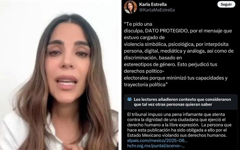 De lo que se trata es de humillar y acallar a ciudadanos que levantan la voz y denuncian los abusos de Morena y sus aliados. La ciudadana Karla María Estrella Murrieta fue obligada por el Tribunal Electoral federal a emitir una disculpa pública durante un mes consecutivo a la diputada federal del PT, Diana Karina Barreras, pero en lugar de nombrarla, le pidieron se dirija a ella como “Dato Protegido”. Esto llevó a que explotaran las redes sociales y exhibieran además que la diputada es pareja del presidente de la Cámara de Diputados, el morenista Sergio Gutiérrez Luna. Pese a que la queja de la diputada que motivó esta orden fue pública, desde el pasado fin de semana Estrella Murrieta comenzó a emitir en su perfil de X las primeras 3 de 30 disculpas públicas a ese “Dato Protegido” por violencia política contra las mujeres en razón de género. OBLIGADA Y SIN DEFENSA “Te pido una disculpa, DATO PROTEGIDO, por el mensaje que estuvo cargado de violencia simbólica, psicológica, por interpósita persona, digital, mediática y análoga, así como de discriminación, basado en estereotipos de género”, dice el texto que fue obligada a subir. La orden de la Sala Regional Especializada, la cual se ratificó en junio pasado en el TEPJF con los votos de la Magistrada presidenta, Mónica Soto, y el Magistrado Felipe Fuentes, considera que el 14 de febrero de 2024 Estrella Murrieta no ejerció su libertad de expresión al acusar que la sonorense fue candidateada tras órdenes de su esposo, el también diputado morenista Gutiérrez Luna. “Así estaría el berrinche de Sergio Gutiérrez Luna para que incluyeran a su esposa, que tuvieron que desmadrar las fórmulas para darle una candidatura. Cero pruebas y cero dudas”, escribió en esa fecha. Tres días después de ese comentario, Barreras, “Dato Protegido”, emitió su queja ante el INE al considerar que fue violentada, y desde ahí, se desencadenó el procedimiento que terminó en la sanción en contra de Estrella Murrieta. Y ADEMÁS QUEDA SANCIONADA Aunado a la serie de disculpas públicas, se ordenó inscribir a la señalada en el Registro Nacional de Personas Sancionadas en Materia Política contra las Mujeres, del INE, y también una multa y medidas de reparación y garantías de no repetición, así como el sensibilizarse en el tema para no repetir ese tipo de violencia. Desde el mismo mes pasado, cuando se reveló lo que algunos especialistas consideraron como censura, la diputada federal petista dijo que no eran necesarias las disculpas. “En aquel contexto del proceso electoral, solicité al INE que interviniera para que calificara estos actos, dejando un precedente de protección para todas las mujeres que quieran incurrir en el ámbito político, sin miedo a ser violentadas”, expresó. “Por otra parte, no necesito que ella se disculpe. Declino la necesidad de una disculpa pública, siempre es bueno el debate, sobre todo el tema público”. NO ES LA PRIMERA Esta disculpa se suma a otras exigidas desde la ‘4T’ a ciudadanos, como la que dio en mayo pasado en la sede del Senado el abogado Carlos Velázquez a Gerardo Fernández Noroña, senador morenista, luego de ofenderlo en septiembre de 2024 en una sala VIP de la Terminal 2 del AICM. Pese a ser reconocido como un político gritón, hiriente e insultante contra legisladores, Noroña exigió esa disculpa pública al ciudadano para evitar un proceso penal ante la FGR. (Fotos: Tomadas de Reforma y redes sociales) Compartir Navegación de entradas Les facilitan chamba a más de 21 mil Si viajas a EU, deberás pagar una cuota adicional