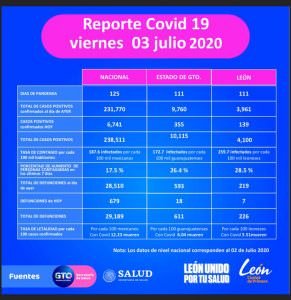 El municipio de León alcanzó los 4 mil 100 casos confirmados y 226 defunciones, manteniéndose como el foco de la entidad.