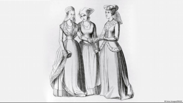 En aquella época, tanto hombres como mujeres lucían numerosas prendas, pero las mujeres, con su vestimenta más compleja, a menudo requerían de la ayuda de criadas para vestirse.