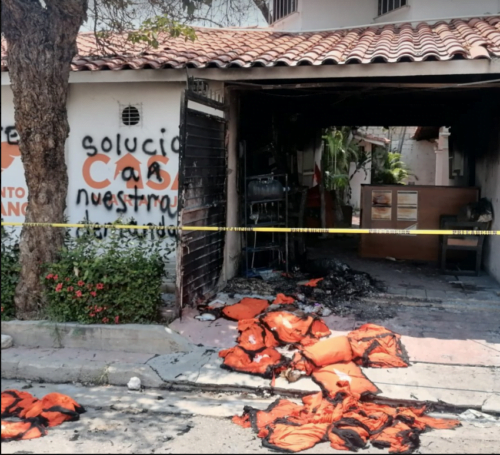 Si bien todas fueron vandalizadas, las únicas oficinas que ardieron en llamas fueron las de MC. Además, la propaganda electoral quedó tirada afuera de las oficinas, incluidos los tenis fosfo, fosfo.