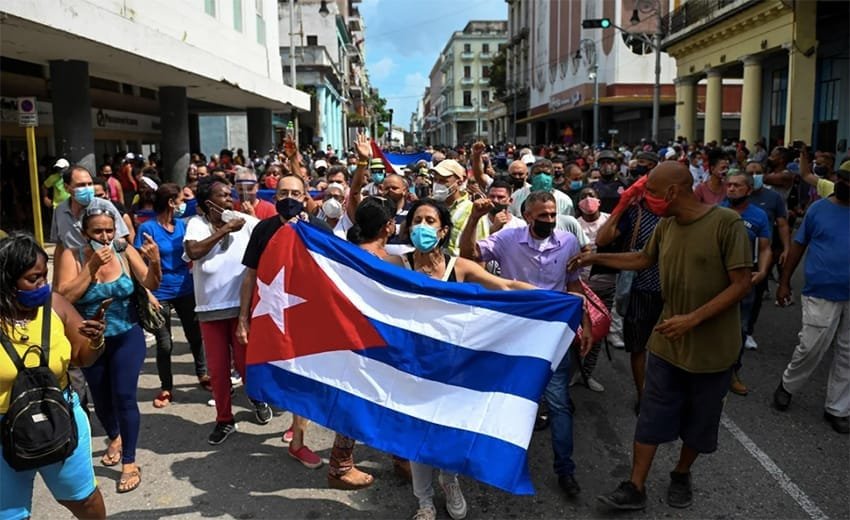 La protesta se produce en una jornada en la que Cuba registró otra cifra récord de contagios de Covid-19 en 24 horas, con 6 mil 923, para un total de 238 mil 491.