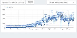 🔊 Escuchar esto La Secretaría de Salud confirmó la noche de este viernes 522 nuevas muertes por coronavirus Covid-19 en el país, con lo que suman 66 mil 851, mientras que el número de contagios acumulados llegó a 623 mil 90, 6 mil 197 más que el jueves. La Secretaría de Salud de Guanajuato (SSG) reportó que la cifra de contagios superó los 35 mil en las últimas 24 horas. [read more=”Leer más” less=”Leer menos”] 🔊 Nota completa En conferencia desde Palacio Nacional, el subsecretario de Salud federal, Hugo López-Gatell, informó que hay 700 mil 502 casos negativos y 85 mil 792 sospechosos. Además, hay un total de un millón 409 mil 384 personas estudiadas y 44 por ciento de esta cifra han sido positivas. En el escenario nacional, los casos estimados para esta semana son 657 mil 744 y los casos activos estimados 41 mil 578 (6 por ciento). La semana epidemiológica 34 registró 434 mil 667 casos recuperados y 68 mil 565 defunciones estimadas. Sobre la disponibilidad de camas para hospitalización general, se reportó un total de 31 mil 561, de las cuales 20 mil 900 están disponibles y 10 mil 661 (34 por ciento) ocupadas. Nayarit, con 57 por ciento, es el estado con la mayor ocupación. En cuanto a la disponibilidad de camas con ventilador, para los pacientes graves de Covid-19, hay un total de 10 mil 489, una disponibilidad de 7 mil 354, y una ocupación de 3 mil 135 o el 30 por ciento. Aguascalientes y Nuevo León son los estados con la mayor ocupación, con un 50 por ciento. En el mundo van más de 26 millones 499 mil casos confirmados de la enfermedad y alrededor de 872 mil 390 fallecimientos, de acuerdo con datos de la Universidad Johns Hopkins. GUANAJUATO SE ACERCA A 3 MIL MUERTOS En su última actualización, la Secretaría de Salud de Guanajuato (SSG) informó que la cifra de muertos por Covid-19 llegó a 2 mil 292, 47 más que el jueves. En contagios, la entidad registró 325 más para llegar a 35 mil 100, de los cuales 34 mil 944 son por transmisión comunitaria y 28 mil 456 se han recuperado, mientras que 2 mil 988 se mantienen en investigación. Solo el municipio de León sumó 19 muertos en las últimas horas para llegar a un total de 911 desde que llegó la pandemia. En cuanto a contagios, León sigue también en la cima en la entidad con 12 mil 670. Las defunciones por municipio quedan así: León 911 Irapuato 221 Celaya 214 Silao 142 Salamanca 106 Guanajuato capital 57 Sn. Fco. Del Rincón 51 Cortazar 49 Sn. Luis de la Paz 43 Dolores Hidalgo 40 Pénjamo 38 Juventino Rosas 36 Romita 34 Salvatierra 33 Valle de Santiago 33 Villagrán 29 Apaseo el Grande 22 Sn. Miguel de Allende 22 Acámbaro 21 Abasolo 17 Purísima del Rincón 17 San José Iturbide 15 Comonfort 14 San Felipe 14 Moroleón 12 Manuel Doblado 11 Apaseo el Alto 10 Uriangato 9 Yuriria 9 Jaral del Progreso 8 Ocampo 8 Doctor Mora 6 Cuerámaro 5 Jerécuaro 5 Tarimoro 5 Huanímaro 4 Sn. Diego de la Unión 4 Tierra Blanca 4 Santiago Maravatío 3 Tarandacuao 3 Victoria 3 Xichú 3 Pueblo Nuevo 1 [/read] Compartir