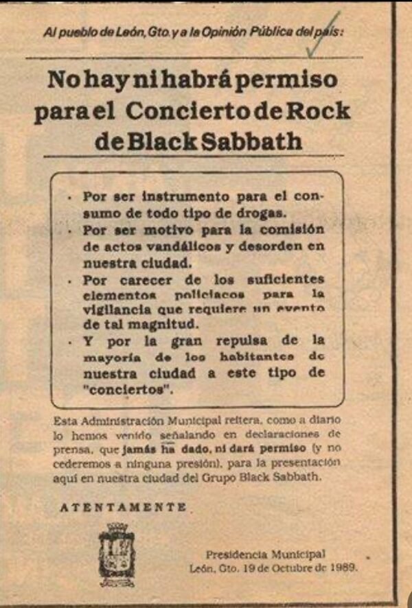 Era fines del año 1989 cuando los fans leoneses de Black Sabbath esperaban la llegada de la banda británica y de su vocalista Ozzy Osbourne que se presentarían en el estadio Nou Camp. Pero todo se vino abajo: el gobierno municipal de entonces decidió de último momento cancelar la presentación -programada para el 28 de octubre- bajo el argumento de que promovía el rock satánico. El alcalde de entonces, Carlos Medina Plascencia, cedió a las presiones de grupos conservadores y asociaciones religiosas para cancelar el concierto. Los argumentos del gobierno municipal fueron que la banda era “instrumento para el consumo de todo tipo de drogas”, que incitaba al “vandalismo y desorden”. También se indicó que la ciudad entonces no contaba con suficientes elementos policiacos para garantizar la seguridad. “ROCK SATÁNICO” El diario Correo rescata información de esa época donde se reproducían los argumentos de la organización “Gente como tú”, cuyo coordinador general dijo que el concierto de Black Sabbath atentaba “contra los valores humanos y espirituales que debía preservar la juventud leonesa”. Ese coordinador citó un fragmento del libro “Queremos Rock” del Dr. Adán Knueste, donde se describía a Black Sabbath como promotores del “rock satánico”, con letras que aludían al ocultismo, la misa negra y el sacrificio humano. Ozzy Osbourne, conocido también como “Príncipe de las Tinieblas”, falleció a la edad de 76 años, informaron familiares del cantante. DUELO MUSICAL La causa de su muerte aún no ha sido revelada, aunque en los últimos años el cantante británico enfrentó diversos problemas de salud, incluyendo el diagnóstico de párkinson en 2020, múltiples cirugías de columna y complicaciones derivadas de una caída sufrida en 2019. Su fallecimiento se dio tres semanas después de su retiro de los escenarios, el pasado 5 de julio, Osbourne se reunió con sus compañeros de Black Sabbath por primera vez desde el 2005 para el concierto “Back to the Beginning“. (Fotos: Tomadas de Reforma y redes sociales) Compartir Navegación de entradas Abanderan a becarios de programas de intercambio Pacto histórico para nuevo modelo de apoyo social
