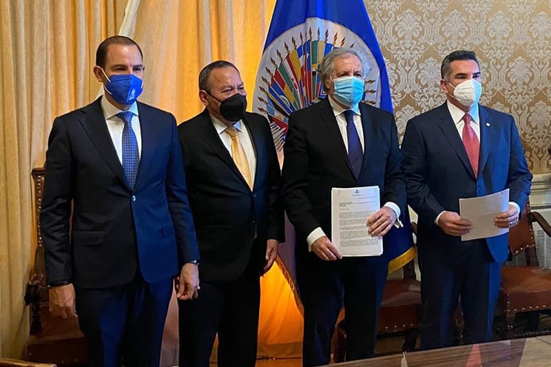 🔊 Escuchar esto La coalición opositora Va por México, conformada por PAN, PRI y PRD, presentó este lunes una denuncia ante la Organización de Estados Americanos (OEA) por la presunta intervención del crimen organizado en las elecciones del pasado 6 de junio. Los presidentes nacionales del PAN, Marko Cortés; del PRI, Alejandro Moreno; y del PRD, Jesús Zambrano; acudieron a Washington DC, donde tiene su sede el organismo continental, donde sostuvieron un encuentro con el secretario general de la OEA, Luis Almagro, quien escuchó los planteamientos de lo ocurrido el pasado 6 de junio. LOS PLANTEAMIENTOS El documento entregado por los opositores consta de cuatro elementos: La intervención, consentida o pactada por el Gobierno federal, del crimen organizado en el pasado proceso electoral; El hostigamiento permanente del Ejecutivo federal al INE y al Tribunal Electoral; El uso faccioso de las instituciones de procuración de justicia y persecución a los opositores al gobierno y el constante ataque a medios de comunicación. Los dirigentes partidistas demandaron a la OEA dar “un constante seguimiento y se emita alguna resolución” sobre los cuatro elementos. … el crimen organizado tuvo una participación activa y lamentablemente no hubo acciones por parte del Gobierno federal para proceder jurídicamente y hacer vales el estado de derecho, convirtiendo este proceso electoral en el más violento del que se tenga escrito en nuestro país”, precisa el documento entregado. Y añade: “lo anterior es con la finalidad de demostrar que han sido violados los derechos humanos de muchos candidatos y ciudadanos durante el actual gobierno. Especialmente sobre la violencia política que se vivió en el pasado proceso electoral en el cual se narran amenazas y el asesinato de 102 candidatos a un puesto de elección popular. Asimismo, según el Instituto Nacional Electoral, se registraron 106 denuncias con características propias de violencia política en razón de género. AMENAZAS CONSTANTES Los opositores, según la información del diario Reforma, indican que la autonomía e independencia de los órganos electorales se ve amenazada constantemente por el presidente de la República, quien los hostiga permanentemente señalándolos de inmorales, corruptos, facciosos y de estar dominados por intereses partidistas. El panista Marko Cortés dijo en su intervención que era momento de levantar la voz para defender el interés superior de todos los mexicanos. Almagro se comprometió a dar una respuesta formal a la queja planteada por la oposición mexicana, finalizó Reforma en su información. (Foto: Tomada de redes sociales) Compartir