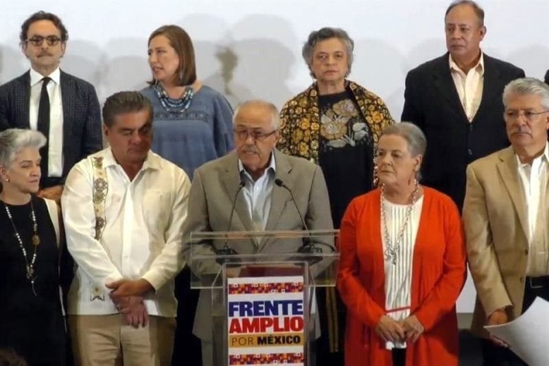 De los 33 aspirantes a encabezar al Frente Amplio por México rumbo al 2024, solo 13, incluida Xóchitl Gálvez, cumplieron los requisitos marcados en el proceso interno, dio a conocer el comité organizador. Entre quienes continuarán en el proceso interno del Frente Opositor están los panistas Santiago Creel, Xóchitl Gálvez, Gabriel Quadri, Jorge Luis Preciado, Francisco Javier García Cabeza de Vaca e Ignacio Loyola. También podrán seguir en la interna del Frente Amplio por México los priistas Enrique de la Madrid y Beatriz Paredes, así como los perredistas Silvano Aureoles, Miguel Ángel Mancera y Jaime Enríquez Félix. ACTIVISTAS INCLUIDOS Quienes también cumplieron con los requisitos marcados en la interna del Frente Opositor están el activista Israel Rivas, representante de los padres de niños con cáncer, y Sergio Iván Torres, presidente de la Red Nacional de Asociaciones Policiales y ex secretario de Seguridad Pública de San Andrés Cholula. Durante el anuncio, los integrantes del Comité Organizador del Frente Amplio Opositor pidieron un minuto de silencio en memoria de Porfirio Muñoz Ledo, consignó el diario Reforma. “Del día 4 al día 9 de julio a 33 personas interesadas, tanto militantes de algún partido político como ciudadanos de distintas regiones y distintas causas, después de revisar los documentos y ver cuáles de ellos se apagaban a los lineamientos, hemos aceptado el registro de 13 de ellos”, anunció el comité organizador. (Foto: Tomada del diario Reforma) Compartir Navegación de entradas Derrochan millones para promocionar a “corcholata” con libro inexistente Xóchitl Gálvez espera que INE aplique medidas cautelares contra López Obrador