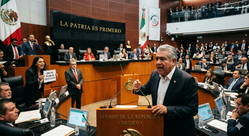 (Fotografía Generada con IA) Redacción: Victoria Dueñas En una de esas noches donde el café del Senado sabe a negociación desesperada y la democracia se cocina a fuego lento, Morena finalmente logró aprobar el “Plan B” de la presidenta Claudia Sheinbaum. Eso sí, el paquete llegó a la meta con una pieza menos: la revocación de mandato, que convenientemente quedó fuera para que el PT no rompiera el “matrimonio” de la cuarta transformación. Tras seis horas de discursos apasionados y una votación que alcanzó la mayoría calificada (87 a favor, 41 en contra), el Senado decidió que siempre no: la Presidenta no podrá adelantar su proceso de revocación a 2027. El “Pacto del PT”: Amor con condiciones El gran protagonista de la noche no fue Morena, sino Alberto Anaya, dirigente del PT, quien aplicó la de “te ayudo, pero me quitas esto”. El PT condicionó su voto a favor de las medidas de austeridad a cambio de eliminar el cambio al artículo 35 constitucional. ¿El resultado? La senadora petista Lizeth Sánchez presentó la reserva para que la revocación se quede como está: en el cuarto año de gobierno. Al parecer, la “naturaleza democrática” del PT solo despierta cuando hay que negociar presupuesto. ⚖️ El Balance: ¿Quién gana y quién pierde? Ver esta publicación en Instagram Una publicación compartida de Alberto Anaya Gutiérrez (@albertoanayagt) Para que no te pierdas en el laberinto legislativo, aquí están las letras chiquitas del acuerdo: Beneficios (La “Victoria” de Morena)Desventajas (El “Sabor Amargo”)Austeridad Radical: Se aprobó el recorte a los presupuestos de los congresos estatales y del Senado. Menos nómina, más “ahorro”.Sin “Efecto Claudia” en 2027: Morena se queda sin su mejor carta de campaña para las elecciones intermedias. La Presidenta no estará en la boleta.Sueldos a Rayuela: Se mantiene el ajuste a las remuneraciones de consejeros, magistrados y funcionarios electorales. El INE seguirá en la mira.Dependencia Total: Morena confirmó que sin el PT no llega a la mayoría calificada. Ahora saben que sus aliados cobran factura (y cara).Unidad “Blindada”: A pesar del drama, la coalición mandó el mensaje de que siguen juntos… aunque sea por conveniencia.Argumento de la Oposición: PAN, PRI y MC celebraron que se frenó lo que llamaron un “intento de campaña presidencial disfrazada”. La frase de la noche “Sería un fracaso haberlo rechazado en su totalidad, como el Plan A” — Ignacio Mier, coordinador de Morena, aplicando la clásica lógica de “peor es nada” tras perder el punto más importante de la reforma. ¿Qué sigue? La minuta ya viaja de regreso a la Cámara de Diputados para que le den el visto bueno final a esta versión “rasurada”. Sheinbaum se queda con la austeridad, pero tendrá que ver las elecciones de 2027 desde la barrera de Palacio Nacional, sin poder pedirle al pueblo que reafirme su amor por ella antes de tiempo. Compartir Navegación de entradas Bienestar para todos (especialmente para el cuñado de AMLO) Trump lanza advertencia: “desatar el infierno” si Irán no acepta acuerdo