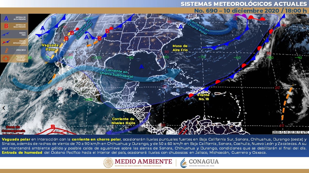 🔊 Escuchar esto Este viernes, Guanajuato tendrá cielos despejados con temperaturas máximas de 26 grados, dio a conocer el Servicio Meteorológico Nacional (SMN). De acuerdo con su último reporte, el organismo dependiente de la Comisión Nacional del Agua (Conagua) pronostica que la Mesa Central cielo despejado a medio nublado, con lluvias aisladas solo en el estado de Morelos. Sin lluvia en el resto de la región. Continúan los bancos de niebla en zonas montañosas y ambiente muy frío al amanecer con posibles heladas en sierras de la región. El viento de dirección variable de 15 a 30 km/h tampoco tendrá cambios a lo largo del día, según el SMN. MÍNIMAS DEBAJO DE LOS 10 EN GUANAJUATO La mayoría de los municipios de Guanajuato tendrán día despejado con nublados vespertinos y máximas promedio de 26 grados. Las mínimas promediarán los 8 a 9 grados durante la madrugada y noche, con excepción de los municipios del noreste y las zonas altas que seguirán con 6 grados mínimas. NUEVO FRENTE FRÍO EN EL NORTE Para el resto del país, el SMN pronostica que un nuevo frente frío se aproximará a la frontera norte de México, ocasionará fuertes rachas de viento y tolvaneras sobre dicha región. El arrastre de humedad generado por la corriente en chorro subtropical continuará generando chubascos y lluvias aisladas sobre entidades del occidente, centro y sur del país. A su vez, prevalecerá ambiente frío a muy frío durante la mañana y noche, con heladas matutinas sobre entidades de la Mesa del Norte y la Mesa Central. Finalmente, se prevé escaso o nulo potencial de lluvia e incremento de las temperaturas diurnas sobre estados del noreste, oriente y sureste de México, así como evento de surada (componente sur) a lo largo del litoral del Golfo de México. Los sistemas meteorológicos ocasionarán este viernes: Intervalos de chubascos (5.1 a 25 mm) acompañados de descargas eléctricas y rachas fuertes de viento durante las tormentas en los estados de Michoacán, Guerrero y Oaxaca. Lluvias aisladas (0.1 a 5.0 mm) en Durango, Sinaloa, Nayarit, Jalisco, Estado de México, Ciudad de México, Morelos y Chiapas. Viento con rachas de 70 a 80 km/h y tolvaneras en Chihuahua y Durango. Viento con rachas de 50 a 60 km/h y tolvaneras en Sonora, Coahuila y Zacatecas. Viento de componente sur con rachas de 50 a 60 km/h en Tamaulipas y con rachas de 40 a 50 km/h en las costas de Veracruz, Campeche y Yucatán. Temperaturas máximas de 35 a 40°C en Michoacán y Guerrero. Temperaturas mínimas para la madrugada del sábado de -15 a -10°C con heladas en zonas montañosas de, Chihuahua y Durango. Temperaturas mínimas para la madrugada del sábado de -10 a -5°C con heladas en zonas montañosas de Baja California y Sonora. Temperaturas mínimas para la madrugada del sábado de -5 a 0°C con heladas en zonas montañosas de Coahuila, Zacatecas y Estado de México. Temperaturas mínimas para la madrugada del sábado de 0 a 5°C y posibles heladas en zonas montañosas de Nuevo León, Hidalgo, Veracruz, Puebla y Tlaxcala. Compartir