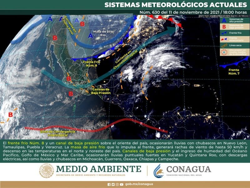 🔊 Escuchar esto Guanajuato seguirá este viernes con día soleado alcanzando máximas de 24 grados y heladas nocturnas en la mayor parte de su territorio, dio a conocer el Servicio Meteorológico Nacional (SMN). De acuerdo con su último reporte, el organismo dependiente de la Conagua prevé que la Mesa Central del país tendrá cielo despejado por la mañana y medio nublado durante la tarde, con lluvias aisladas en Querétaro e Hidalgo. Seguirán los bancos de niebla y ambiente frío con heladas al amanecer en zonas altas de Guanajuato, Querétaro, Hidalgo, Morelos, Tlaxcala y Puebla. Se espera ambiente templado por la tarde con viento del noreste de 20 a 30 km/h y pocas rachas de viento. DESPEJADO CON FRÍO EN GUANAJUATO Para Guanajuato, el reporte indica que habrá este viernes cielos despejados durante la mayor parte del día, pero con máximas de 24 a 25 grados con nula probabilidad de lluvia. Todos los municipios del estado tendrán además baja humedad y mínimas promedio de 7 grados durante la noche. Los municipios del noreste seguirán con las temperaturas más bajas en el estado con máximas de 19 grados y mínimas de 5 grados promedio durante la noche y madrugada del sábado. SE ESTACIONA FRENTE FRÍO Para el resto del país, el SMN dijo que el frente 8 se extenderá sobre el noreste de México e interaccionará con un canal de baja presión sobre el oriente del país lo que ocasionará chubascos con lluvias puntuales fuertes en el noreste, oriente y sureste de México. La masa de aire frío será reforzada, ocasionado un nuevo descenso de temperatura en el norte de México. CHUBASCOS EN EL SUR Canales de baja presión sobre el occidente y sur del territorio mexicano, así como en la Península de Yucatán en interacción con el ingreso de humedad del Océano Pacífico, Golfo de México y Mar Caribe ocasionarán lluvias y chubascos en las regiones mencionadas. Los sistemas meteorológicos mencionados ocasionarán este viernes: Intervalos de chubascos con lluvias puntuales fuertes (25 a 50 mm) en Nuevo León, Tamaulipas, Chiapas, Tabasco, Campeche, Yucatán y Quintana Roo. Intervalos de chubascos (5 a 25 mm) en Coahuila, San Luis Potosí, Jalisco, Colima, Michoacán, Guerrero, Oaxaca y Veracruz. Lluvias aisladas (0.1 a 5 mm) en Durango, Zacatecas, Estado de México, Querétaro e Hidalgo. Viento con rachas de 50 a 60 km/h en Baja California y Golfo de California. Viento de componente norte con rachas de 50 a 60 km/h en el Istmo y Golfo de Tehuantepec. Temperaturas máximas de 30 a 35 °C en Baja California, Baja California Sur, Sonora, Sinaloa, Tamaulipas, Veracruz, Nayarit, Michoacán, Guerrero, Oaxaca, Chiapas, Campeche, Quintana Roo y Yucatán. Temperaturas mínimas para la madrugada del sábado de -5 a 0 °C con heladas en zonas montañosas de Chihuahua, Durango, Estado de México, Tlaxcala, Guanajuato y Puebla. Temperaturas mínimas para la madrugada del sábado de 0 a 5 °C y posibles heladas en zonas montañosas de Sonora, Coahuila, Nuevo León, San Luis Potosí, Zacatecas, Aguascalientes, Jalisco, Michoacán, Querétaro, Hidalgo, Veracruz, Oaxaca, Ciudad de México y Chiapas. Compartir
