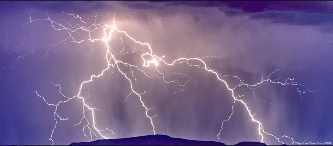 El relámpago más largo del que se tiene registro midió 829 kilómetros y se extendió desde el este de Texas hasta las cercanías de Kansas City, atravesando la región conocida como las Grandes Llanuras de EU.