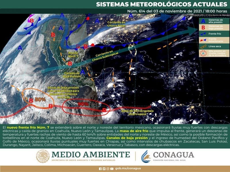 🔊 Escuchar esto Guanajuato seguirá este jueves con cielos despejados y muy baja probabilidad de lluvia, aunque continuará el clima frío durante la noche, dio a conocer el Servicio Meteorológico Nacional (SMN). De acuerdo con su último reporte, el organismo dependiente de la Conagua pronostica que la Mesa Central del país tendrá cielo despejado a medio nublado con intervalos de chubascos solo en Querétaro, Hidalgo y Puebla, así como lluvias aisladas en Morelos y Tlaxcala. El ambiente fresco seguirá por la mañana con bancos de niebla y temperaturas frías matutinas en zonas altas de Guanajuato, Querétaro, Hidalgo, Puebla y Tlaxcala. Se sentirá ambiente templado a cálido por la tarde con viento del este y noreste de 15 a 30 km/h acompañado de rachas de 45 km/h en la región. SOLEADO Y FRÍO EN GUANAJUATO El reporte meteorológico indica que Guanajuato tiene nula probabilidad de lluvia, aunque por la noche se presentarán heladas en la entidad. Las temperaturas máximas en la entidad oscilarán entre los 24 y 25 grados a lo largo del día que estará mayormente despejado con algunos nublados vespertinos. Las mínimas en la mayor parte de la entidad serán de 8 a 9 grados durante la noche con algunas rachas de viento. Los municipios del noreste serán los fríos con máximas de 22 grados en el día con mínimas de entre 5 y 6 grados en la noche y madrugada del viernes. FRENTE FRÍO EN EL NORTE Para el resto del país, el SMN dijo que el frente frío 7 recorrerá el noreste, oriente y parte del sureste del territorio mexicano, en su recorrido provocará chubascos con lluvias puntuales fuertes en dichas regiones. La masa de aire frío asociada al frente ocasionará un descenso de temperatura sobre entidades del norte, noreste, oriente y centro del país, además de evento de “norte” con rachas de 60 a 70 km/h en las costas de Tamaulipas y Veracruz, efectos que se extenderán hacia el Istmo y Golfo de Tehuantepec. LLUVIAS EN EL SUR Canal de baja presión sobre el occidente del territorio mexicano, en interacción con el ingreso de humedad del Océano Pacífico, ocasionará intervalos de chubascos en el occidente y sur de México. Los sistemas meteorológicos mencionados ocasionarán este jueves: Intervalos de chubascos con lluvias puntuales fuertes (25 a 50 mm) en los estados de Tamaulipas, Veracruz, Tabasco, Chiapas, Campeche y Quintana Roo. Intervalos de chubascos (5 a 25 mm) en Coahuila, Nuevo León, San Luis Potosí, Jalisco, Colima, Michoacán, Querétaro, Estado de México, Hidalgo, Puebla, Guerrero, Oaxaca y Yucatán. Lluvias aisladas (0.1 a 5 mm) en Morelos y Tlaxcala. Evento de “Norte” con rachas de 60 a 70 km/h y oleaje de 1 a 2 metros de altura en las costas de Tamaulipas, Veracruz, Istmo y Golfo de Tehuantepec. Viento con rachas de 40 a 50 km/h en Coahuila, Nuevo León, Durango, San Luis Potosí, Zacatecas, Querétaro e Hidalgo. Temperaturas máximas de 30 a 35 °C en Baja California, Baja California Sur, Sonora, Sinaloa, Oaxaca, Guerrero, Chiapas, Campeche, Yucatán y Quintana Roo. Temperaturas mínimas para la madrugada del viernes de -5 a 0 °C con heladas en las zonas montañosas de Chihuahua y Durango. Temperaturas mínimas para la madrugada del viernes de 0 a 5 °C y posibles heladas en zonas montañosas de Baja California, Sonora, Coahuila, Nuevo León, Tamaulipas, San Luis Potosí, Zacatecas, Aguascalientes, Guanajuato, Michoacán, Querétaro, Hidalgo, Veracruz, Oaxaca, Puebla, Tlaxcala, Estado de México y Ciudad de México. Compartir
