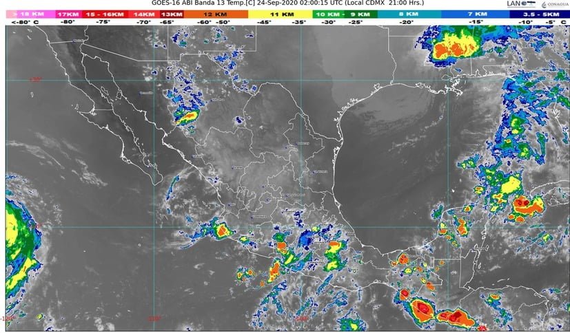 🔊 Escuchar esto Guanajuato tendrá este jueves día soleado con apenas 10 por ciento de probabilidad de lluvia, dio a conocer el Servicio Meteorológico Nacional (SMN). De acuerdo con su último reporte, el organismo dependiente de la Comisión Nacional del Agua (Conagua) pronostica que para la Mesa Central del país se presente cielo nublado por la tarde, con lluvias puntuales muy fuertes acompañadas de descargas eléctricas en el estado de Puebla; fuertes en Morelos y Tlaxcala, así como intervalos de chubascos en Hidalgo. Ambiente templado a cálido durante la tarde. Viento del noreste de 15 a 30 km/h en la región. Todos los municipios de Guanajuato tendrán cielos despejados con temperaturas que irán de los 25 a los 27 grados como máximas con algunas rachas de viento. Las temperaturas mínimas promediarán entre los 14 y 15 grados en la mayoría de los municipios, mientras que las zonas altas tendrán 11 a 12 grados, añadió el reporte. LLUVIAS EN EL SUR DEL PAÍS Para el resto del país, el SMN prevé que un canal de baja presión se extenderá sobre el sureste de la República Mexicana, interaccionará con una circulación de baja presión en el Golfo de Tehuantepec y con el ingreso de humedad del Océano Pacífico y Golfo de México, provocando lluvias fuertes a muy fuertes acompañadas de descargas eléctricas y rachas de viento sobre entidades del oriente y sureste del territorio nacional, incluida la Península de Yucatán, con tormentas puntuales intensas en Oaxaca y Chiapas. CHUBASCOS EN EL OCCIDENTE Un segundo canal de baja presión sobre el occidente del territorio nacional, en interacción con el ingreso de humedad del Océano Pacífico, originarán chubascos y lluvias fuertes en el occidente, centro y sur del país, con puntuales muy fuertes en Michoacán y Guerrero, las cuales podrían estar acompañadas de descargas eléctricas y posibles granizadas. CALORÓN EN EL NORTE Asimismo, se mantendrá ambiente muy caluroso sobre entidades del noroeste, norte, noreste, oriente, occidente, sur y sureste de México, con temperaturas máximas entre 40°C y 45 °C en Baja California y Sonora. Se esperan así este jueves lluvias muy fuertes con lluvias puntuales intensas (75 a 150 mm) acompañadas de descargas eléctricas, granizadas y rachas fuertes de viento durante las tormentas en los estados de Oaxaca y Chiapas. Lluvias fuertes con lluvias puntuales muy fuertes (50 a 75 mm) acompañadas de descargas eléctricas, granizadas y rachas fuertes de viento durante las tormentas en Michoacán, Guerrero, Puebla, Veracruz, Tabasco y Campeche. Intervalos de chubascos con lluvias puntuales fuertes (25 a 50 mm) acompañados de descargas eléctricas, granizadas y rachas fuertes de viento durante las tormentas en Jalisco, Colima, Estado de México, Morelos, Tlaxcala, Yucatán y Quintana Roo. Intervalos de chubascos (5.1 a 25 mm) acompañados de descargas eléctricas, granizadas y rachas fuertes de viento durante las tormentas en Sinaloa, Nayarit, Ciudad de México e Hidalgo. Lluvias aisladas (0.1 a 5 mm) en Sonora, Chihuahua, Coahuila, Nuevo León, Tamaulipas y Durango. Viento con rachas de 50 a 60 km/h en los estados de Baja California y Baja California Sur. Temperaturas máximas de 35°C a 40°C en Baja California Sur, Chihuahua, Nuevo León, Tamaulipas, San Luis Potosí (oriente), Sinaloa, Nayarit, Jalisco, Michoacán, Guerrero, Oaxaca, Chiapas, Veracruz, Campeche, Yucatán y Quintana Roo. Compartir