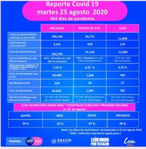 León sigue como el municipio con las cifras más altas de defunciones y contagios con 787 y 11 mil 964, respectivamente.