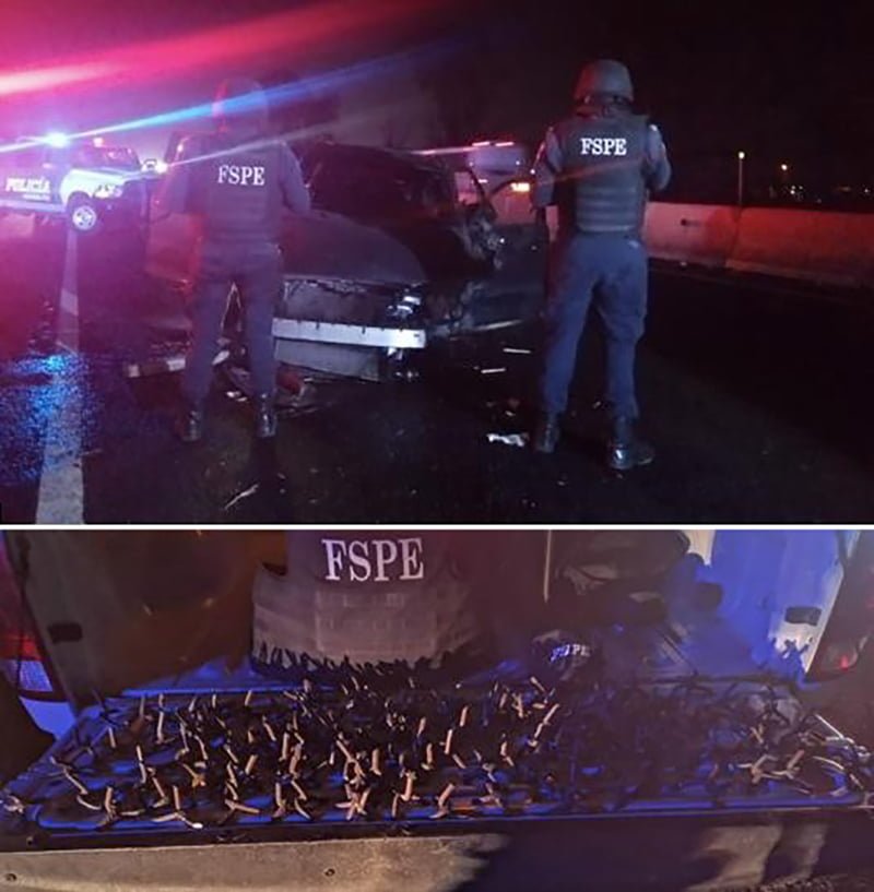 • Sobre la carretera Villagrán–Celaya, se aseguró un vehículo con 136 artefactos ponchallantas.