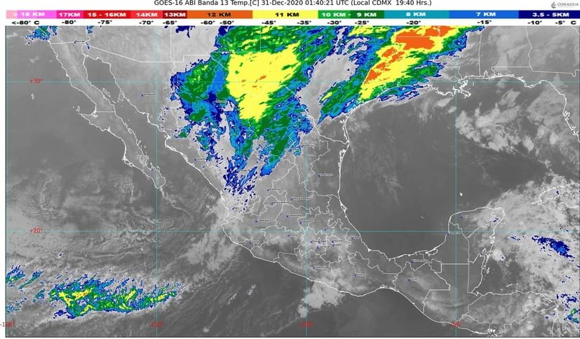Ambos sistemas interaccionarán con la corriente en chorro subtropical, ocasionando intervalos de chubascos en los estados del norte y occidente del país, con lluvias puntuales fuertes en Coahuila, Nuevo León (norte y occidente) y Tamaulipas (norte).