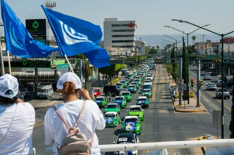 Taxistas a bordo de cientos de vehículos armaron una caravana en calles de León para manifestar su apoyo a la candidata a la gubernatura Libia Dennise García. Los taxistas tomaron el bulevar Adolfo López Mateos e iniciaron su recorrido en el cruce de la calle Alud, en la colonia Villas de Las Torres, para avanzar hasta el Malecón del Río de los Gómez. A lo largo del trayecto las banderas blanquiazules ondearon desde las ventanas de los taxis y los cláxones sonaron con entusiasmo en apoyo a la abanderada de la coalición “Fuerza y Corazón por Guanajuato”. “ES LA MEJOR” Uno de los taxistas que se puso la camiseta del PAN en esta caravana fue Héctor Pascual Gutiérrez Martínez, simpatizante del proyecto que encabeza Libia. “Sabemos que Libia es la mejor candidata y será nuestra próxima gobernadora. Los taxistas tenemos un papel muy importante”, indicó. El trabajador del volante narró que platican con los pasajeros acerca de que la mejor opción para León, Guanajuato y México son las candidatas y candidatos de Acción Nacional. GRANITO DE ARENA Gerardo Carpio, otro taxista convencido de votar por la candidata del PAN, PRI y PRD, se bajó de su unidad para apoyar pegando calcomanías de Libia. “Ella tiene el mejor proyecto y nosotros estamos poniendo nuestro granito de arena para que llegue a ser nuestra gobernadora”, precisó. “El gremio del transporte estamos convencidos de las buenas propuestas de Acción Nacional. A nosotros nos toca trasmitir eso a cada persona que aborda nuestras unidades”, agregó. INVITACIÓN GENERAL En el crucero del Parque Hidalgo estuvo Rene Sánchez, un ciudadano que cada tres años sale a promover el voto para el PAN y en esta ocasión no fue la excepción, pues confía en Libia y en el nuevo comienzo para Guanajuato. “Nos toca invitar a la gente a salir a votar el 2 de junio y aportar a la democracia de nuestro país, ojalá que la gente pueda entender la importancia de votar”, expresó don René. A la caravana se sumaron ciudadanos que apoyan a la candidata a la gubernatura. Compartir Navegación de entradas Sumarán 73 autobuses más al transporte público de León Academia de Policía de León pasa a ser Universidad Metropolitana